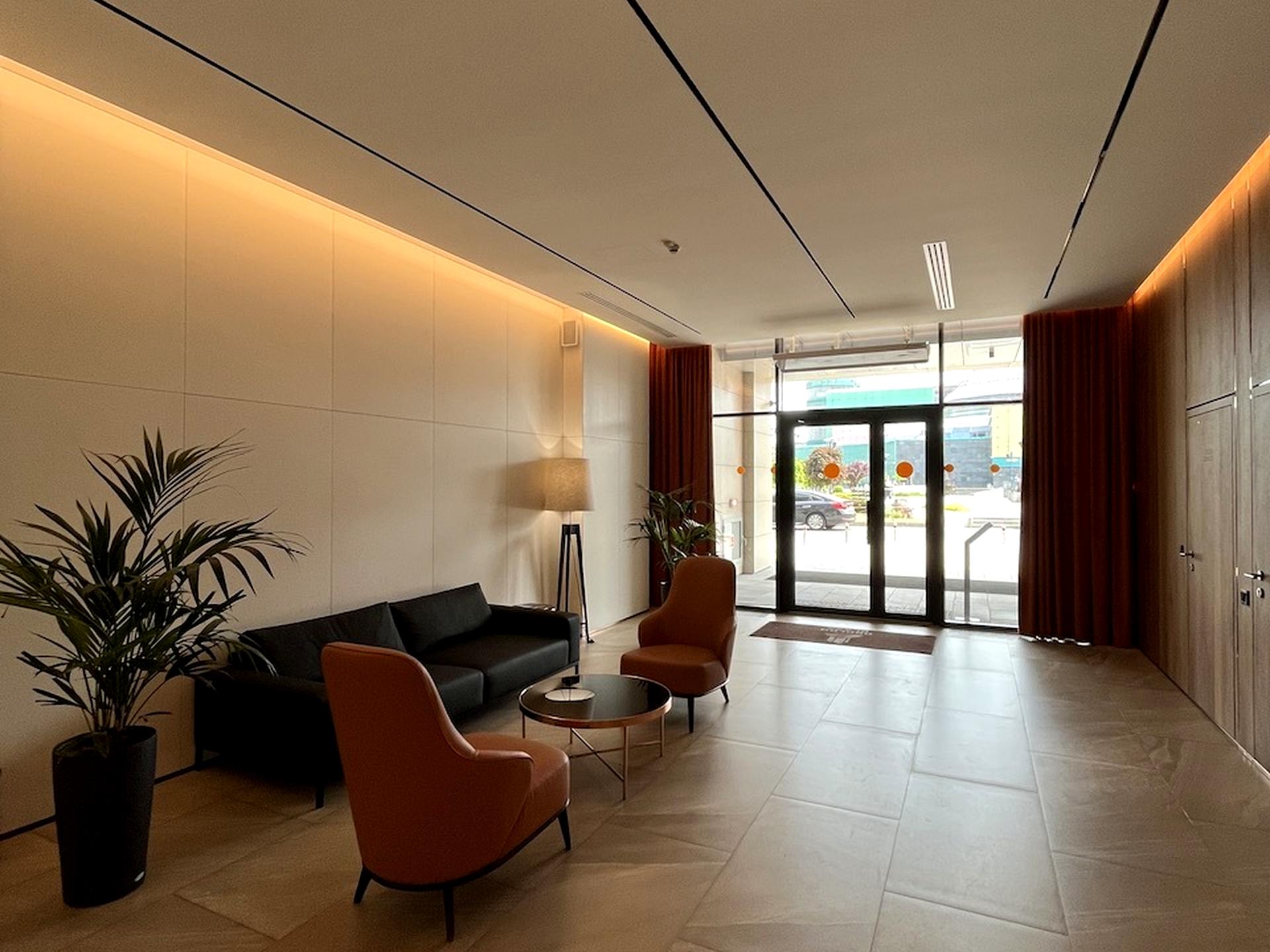 На центральному вході 1 поверха знаходиться загальна рецепція та адміністратор офісного центру.
