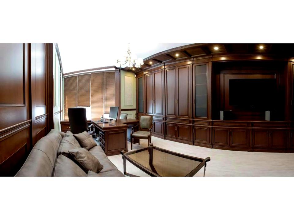 Меблі: Меблі з ясеня, стінові панелі з американського дуба.