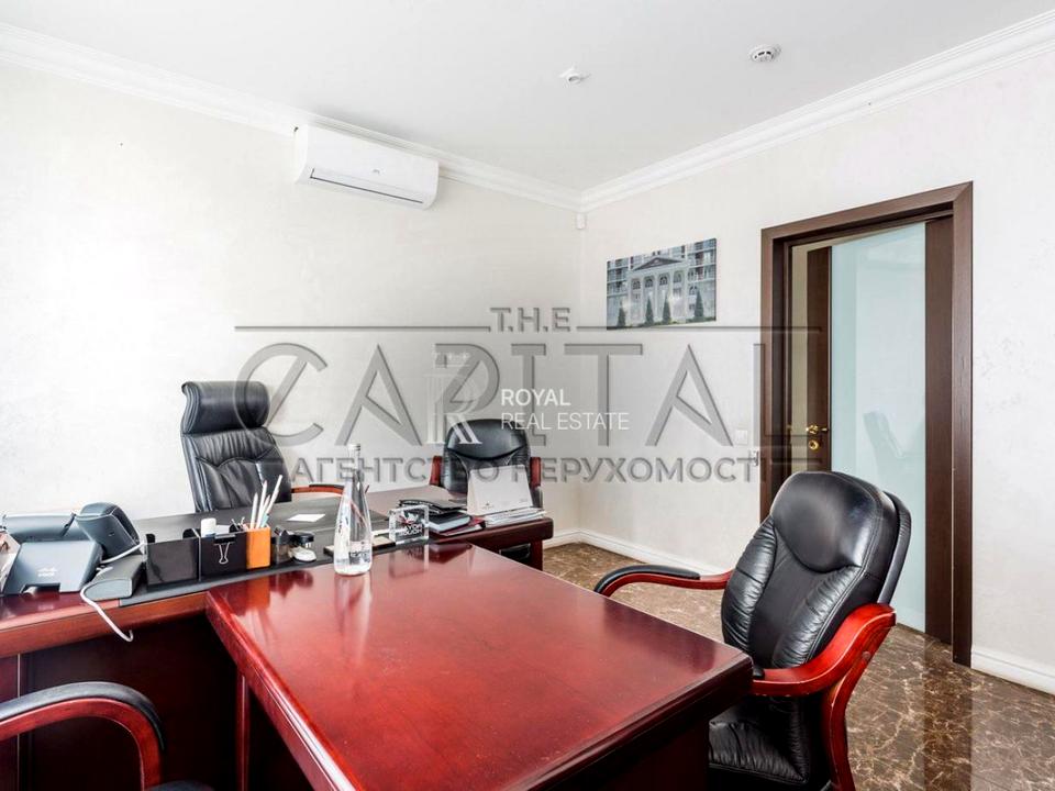 Перший поверх площею 227,5 м² включає просторі кабінети, блок керівництва з окремими приміщеннями для генерального і комерційного директорів, а також кухню і 2 санвузли. На цокольному поверсі площею 446,4 м² розміщені переговорна зала та додаткові кабінети.