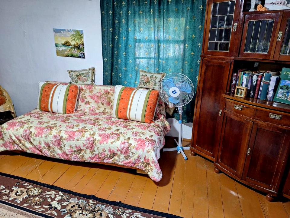 Будинок, 1 поверх, 3 кімнати. Матеріал стін - цегляний, фундамент будинку - залізобетон, матеріал перекриттів - дерево. Площа ділянки 73 сотки. Висота стелі 2.4 метра. Покриття підлоги: покриття підлоги - лінолеум, покриття підлоги - дерево. Тип кухні - окрема кухня. Є підвал. У будинку є Душова кабіна, Холодильник, Сад/город, Зона мангалу. Своя каналізація. Загальний стан будинку - Частковий ремонт. Газ балонний. Холодна вода - колодязь. Гаряча вода - електричний бойлер. Опалення котел електричний. Кількість санвузлів: 1. Покриття даху - металочерепиця. Кількість спален: 3. Комісія за послуги 5 %