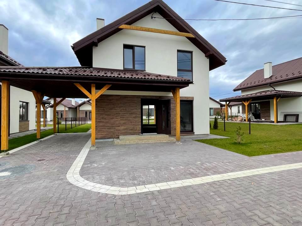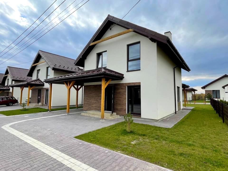 Будинок площею 96 кв. м² (2 поверхи: 3 житлові кімнати + велика кухня-вітальня, 2 санвузли)+ накрита тераса 15 м² + ґанок + паркомісце - піднавіс для авто, пл. 19 м².
