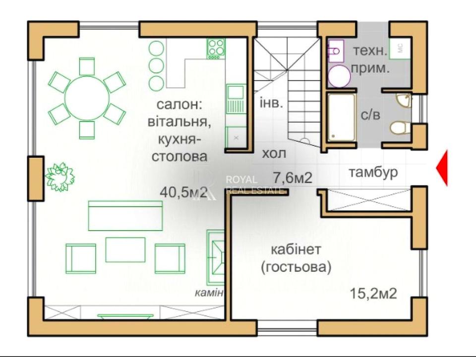 - Гостьова кімнатакабінет 15,2 м