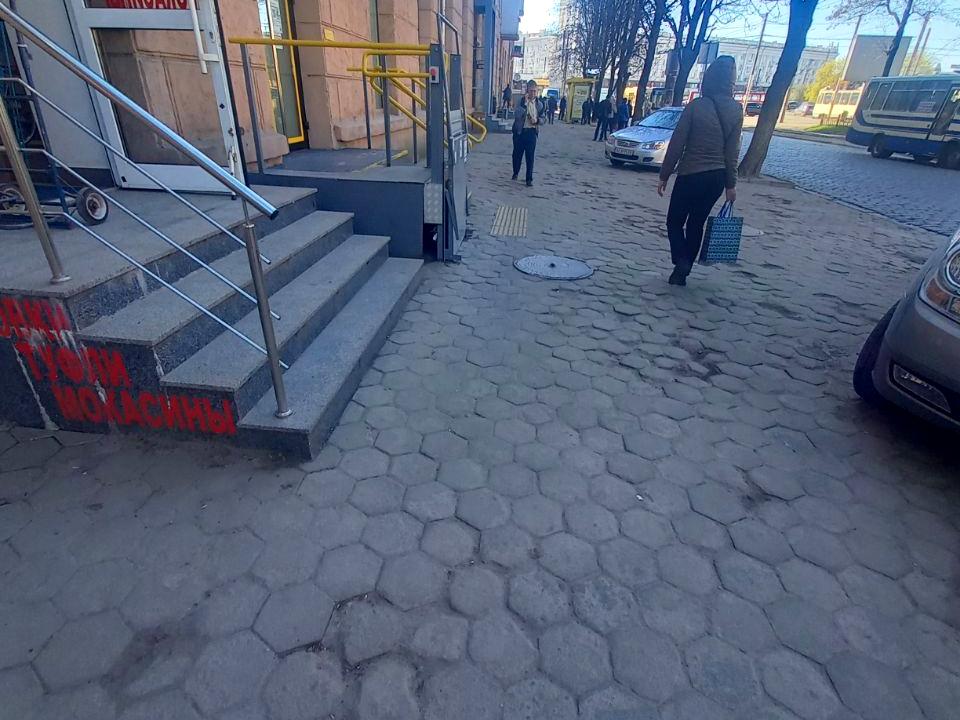 Окремий вхід, великі вікна, гарний трафік, біля зупинки транспорту.