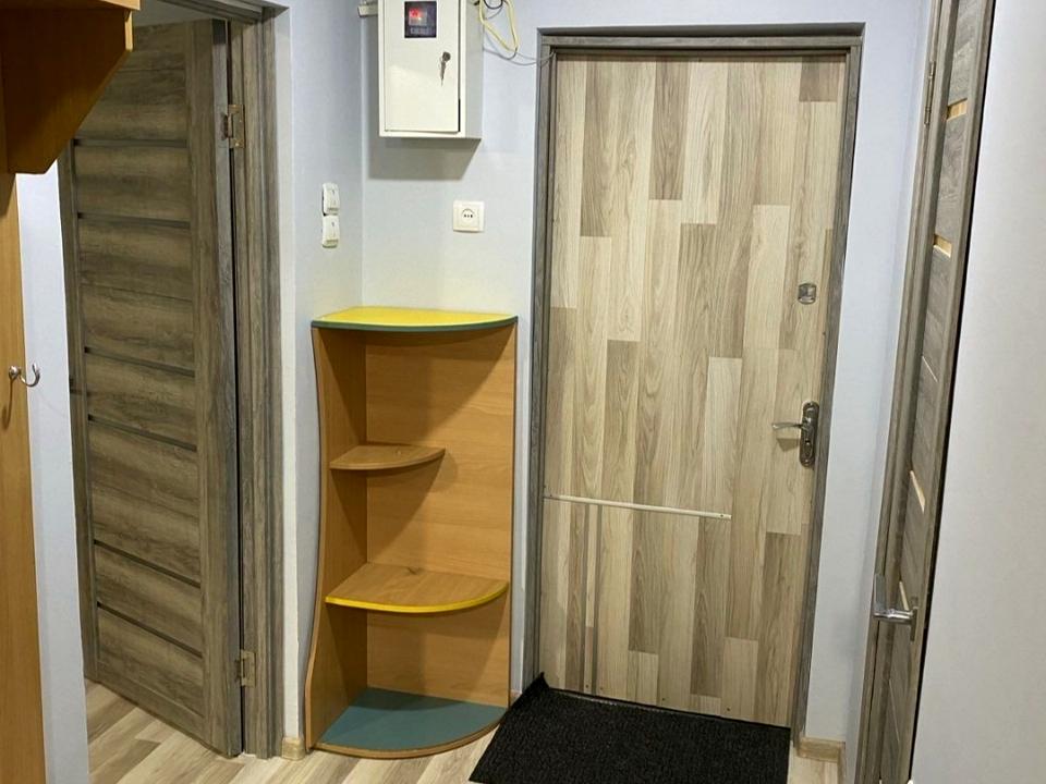 Є всі необхідні меблі для життя, великий розкладний диван і техніка.