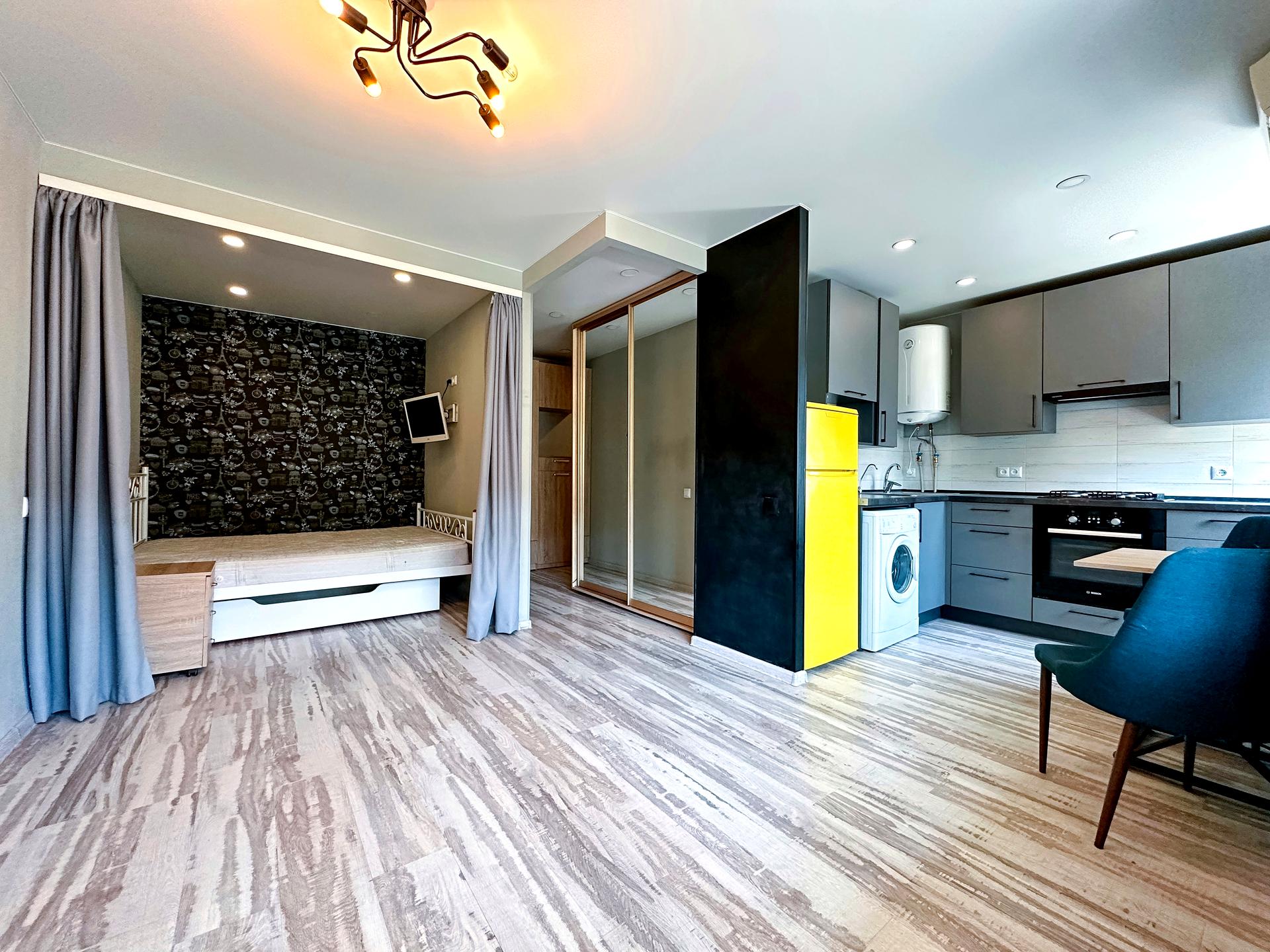 В квартирі 1 кімната, Тип будинку - Хрущівка. Планування кімнат Студія. В квартирі є . Загальний стан квартири - З ремонтом. Комісія за послуги 100 %