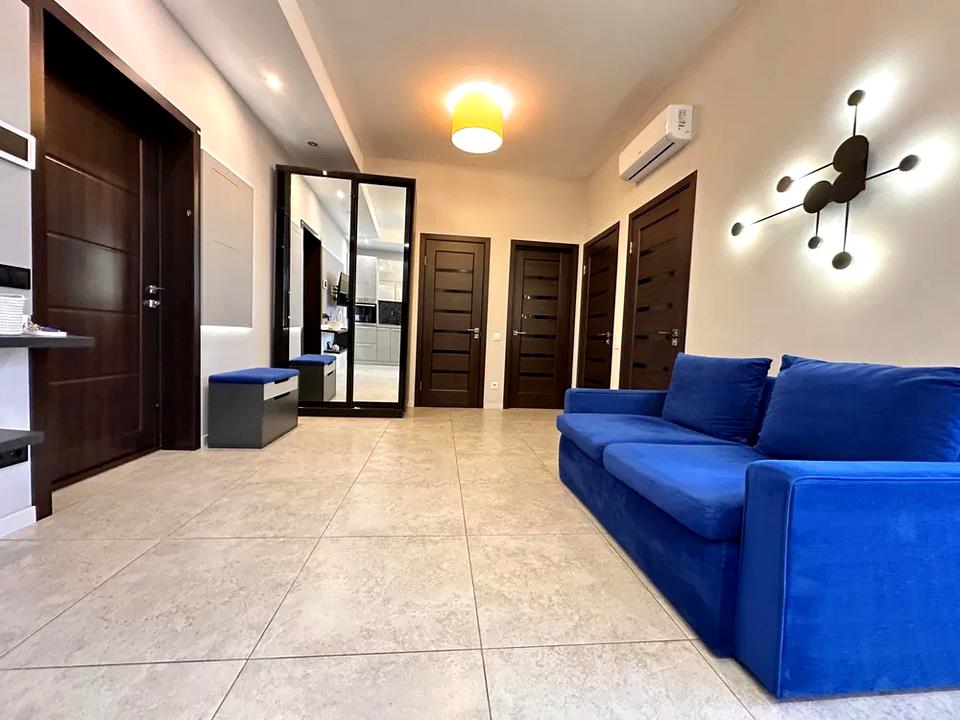 В квартирі 3 кімнати, Технологія будівництва - Монолітно-каркасна, Тип будинку - Спец. проект. Вид з вікон на місто. Квартира стандартна, планування кімнат Студія. Кухонна плита електрична. Гаряча вода - електричний бойлер. Опалення автономне. Суміщений санвузол, Туалет/душ. В квартирі є Телевізор, Шафа, Ліжко, Підігрів підлоги, Кондиціонер, Пральна машина, Душова кабіна, Холодильник, Посудомийна машина, Лічильники. Будинок побудований в 2017 році. Загальний стан квартири - З ремонтом. Охорона. Поруч є школа, дитсадок, зупинки, розважальні заклади, супермаркет, парк. Інтернет бездротовий. Працює без світла - вода, ліфт. Комісія за послуги 75 %