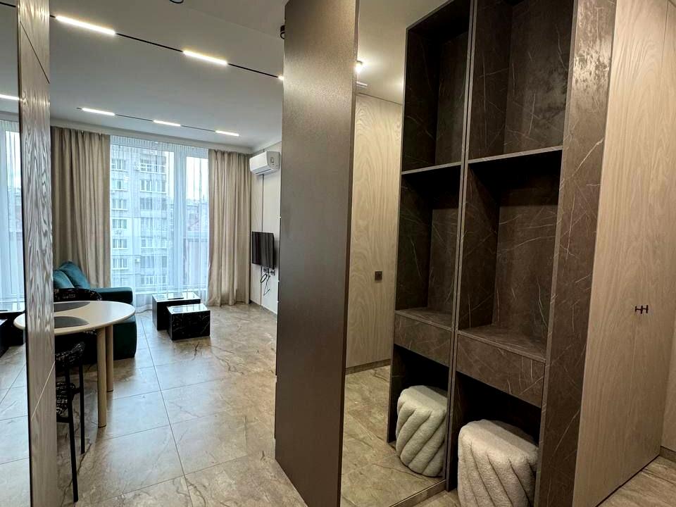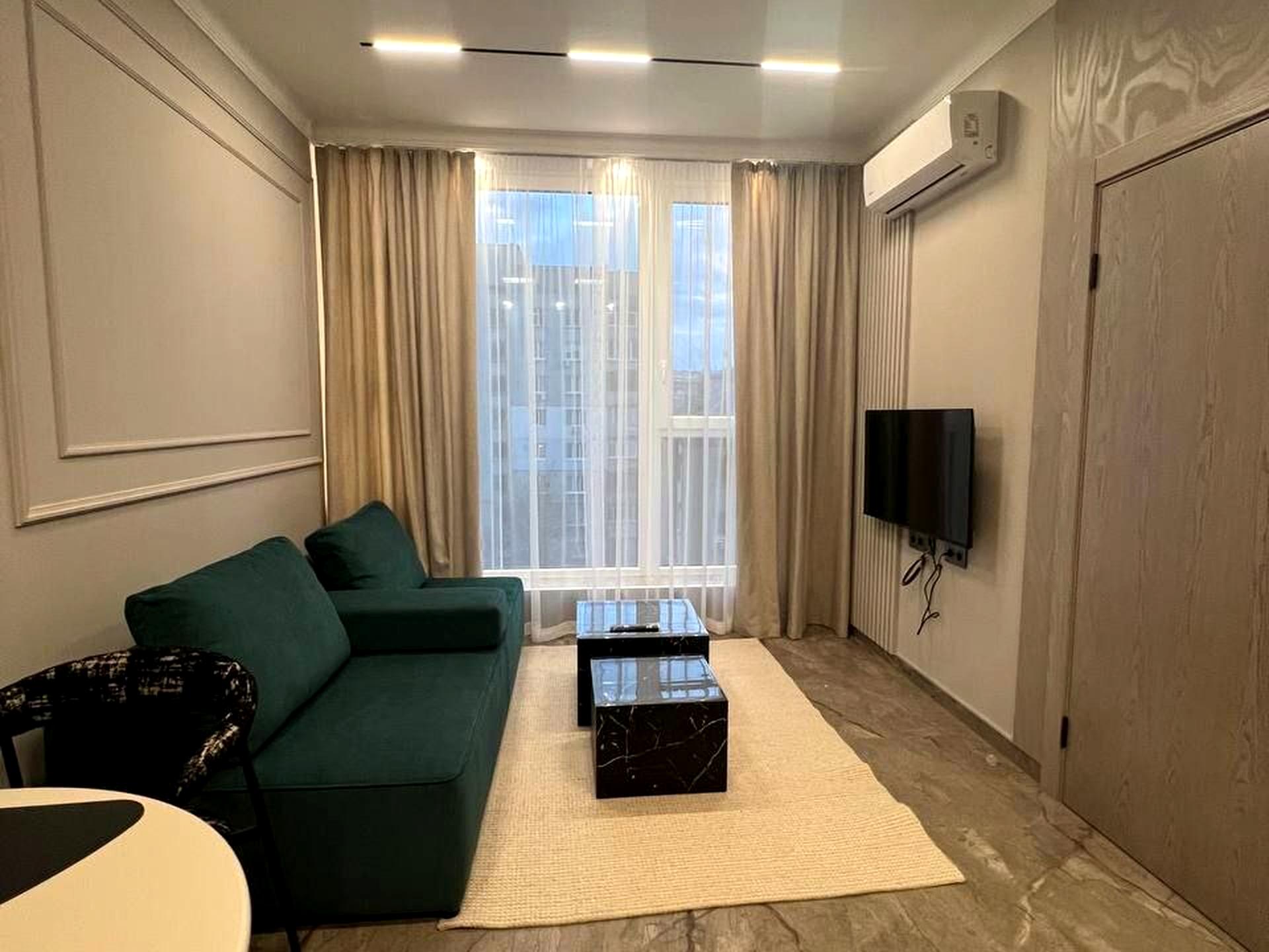 В квартирі 1 кімната. Планування кімнат Роздільне. В квартирі є . Будинок побудований в 2021 році. Загальний стан квартири - З ремонтом. Працює без світла - вода, інтернет. Комісія за послуги 100 %