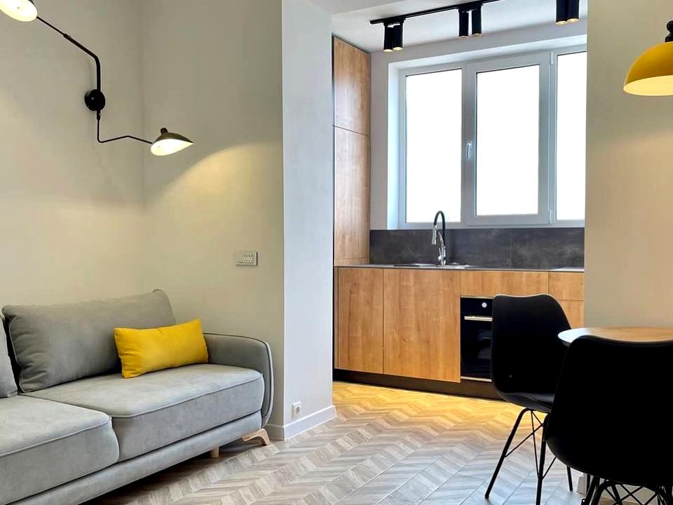 В квартирі 2 кімнати, висота стелі 2.8 метра, Технологія будівництва - Цегляна, Тип будинку - Спец. проект. Планування кімнат Суміжно-роздільне. Немає газу, кухонна плита електрична. Є балкон. У квартирі є Кондиціонер, Пральна машина, Ванна, Холодильник, Мікрохвильовка. Будинок побудований в 2022 році. Загальний стан квартири - З ремонтом. Гаряча вода - електричний бойлер. Кількість санвузлів: 1. Інтернет оптоволоконний. Працює без світла - вода, інтернет. Тип кухні - кухня-студія. Кількість спален: 1. Комісія за послуги 100 %