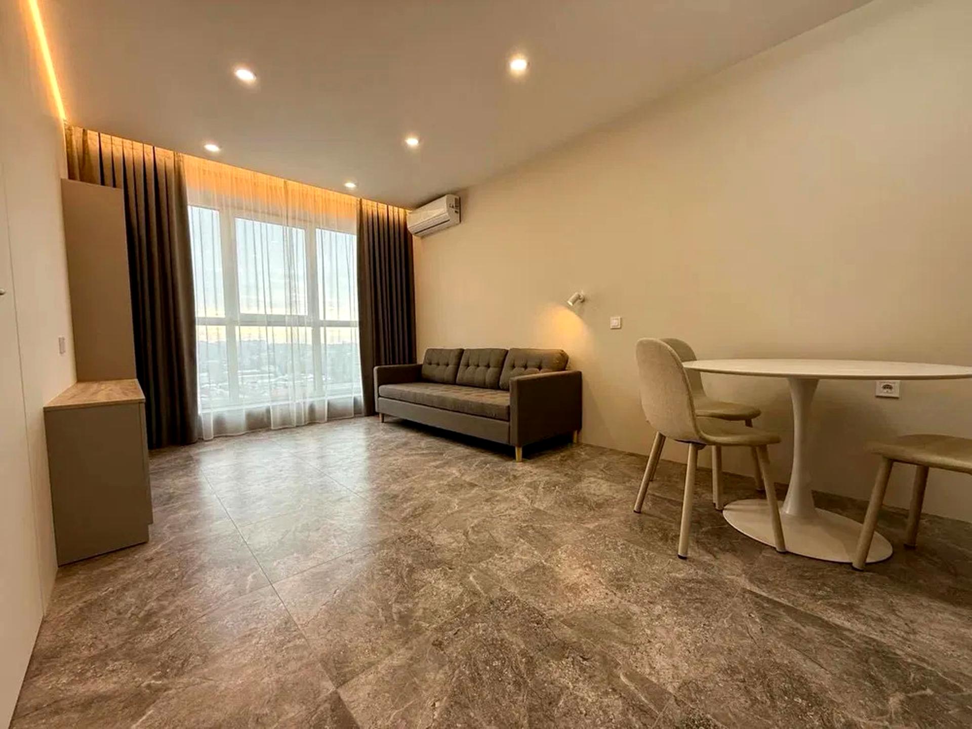 В квартирі 2 кімнати, Технологія будівництва - Цегляна, Тип будинку - Спец. проект. Кухонна плита електрична. У квартирі є Підігрів підлоги, Кондиціонер, Пральна машина, Душова кабіна, Холодильник, Мікрохвильовка. Будинок побудований в 2025 році. Загальний стан квартири - З ремонтом. Гаряча вода - електричний бойлер. Кількість санвузлів: 1. Інтернет бездротовий. Працює без світла - вода, опалення, інтернет, резервне живлення квартири (акумулятори). Тип кухні - кухня-студія. Кількість спален: 1. Комісія за послуги 75 %