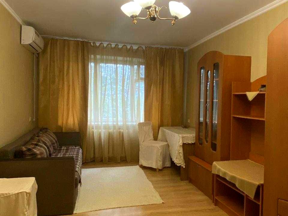 В квартирі 2 кімнати, висота стелі 2.5 метра, Технологія будівництва - Блочна, Тип будинку - Хрущівка. Є газ, кухонна плита газова. Є балкон. У квартирі є Телевізор, Кондиціонер, Пральна машина, Ванна, Холодильник, Мікрохвильовка. Будинок побудований в 1975 році. Загальний стан квартири - З ремонтом. Безбар'єрність: дверні отвори в будинку шириною понад 0.9 м, паркувальні місця для осіб з інвалідністю. Гаряча вода - газова колонка. Кількість санвузлів: 1. Інтернет оптоволоконний. Працює без світла - вода, газ, опалення, інтернет. Тип кухні - окрема кухня. Кількість спален: 2. Інфраструктура території: дитячий майданчик, спортивний майданчик. Комісія за послуги 75 %