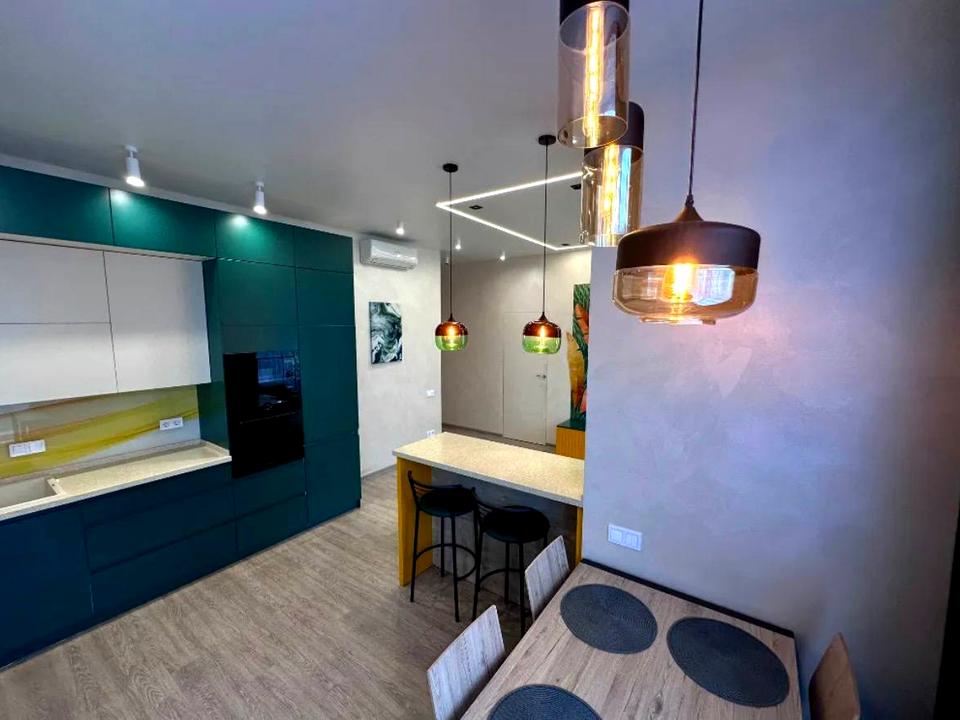 В квартирі 2 кімнати, висота стелі 3 метра, Тип будинку - Спец. проект. У квартирі є Телевізор, Кондиціонер, Пральна машина, Холодильник. Будинок побудований в 2017 році. Загальний стан квартири - З ремонтом. Безбар'єрність: дверні отвори в будинку шириною понад 0.9 м. Кількість санвузлів: 1. Працює без світла - вода, інтернет. Тип кухні - кухня-студія. Кількість спален: 2. Інфраструктура території: дитячий майданчик, спортивний майданчик. Комісія за послуги 100 %