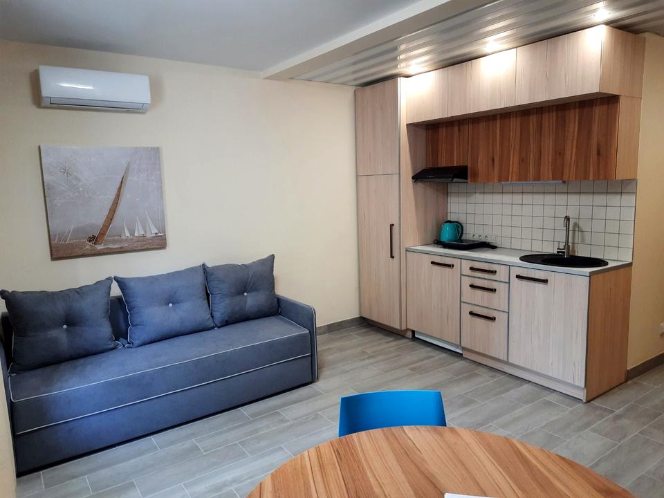 В квартирі 1 кімната, висота стелі 2.7 метра, Технологія будівництва - Цегляна, Тип будинку - Спец. проект. Кухонна плита електрична. Немає балкона. У квартирі є Телевізор, Кабельне ТБ, Праска, Кондиціонер, Пральна машина, Душова кабіна, Холодильник, Мікрохвильовка, Посуд. Будинок побудований в 2015 році. Загальний стан квартири - З ремонтом. Гаряча вода - електричний бойлер. Кількість санвузлів: 1. Інтернет дротовий (кабельний). Працює без світла - вода, резервне живлення квартири (акумулятори). Тип кухні - кухня-студія. Кількість спален: 1. Інфраструктура території: дитячий майданчик. Комісія за послуги 75 %