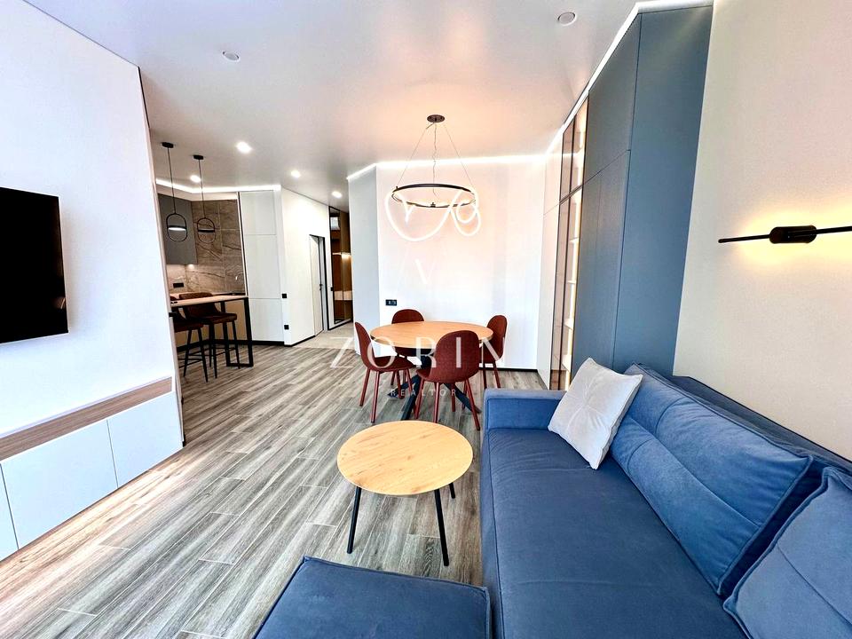 В квартирі 2 кімнати, висота стелі 3 метра, Технологія будівництва - Монолітно-каркасна. Немає газу, кухонна плита електрична. Немає балкона. У квартирі є Телевізор, Підігрів підлоги, Кондиціонер, Пральна машина, Ванна, Холодильник, Мікрохвильовка, Посудомийна машина, Посуд. Будинок побудований в 2024 році. Загальний стан квартири - З ремонтом. Гаряча вода - електричний бойлер. Кількість санвузлів: 1. Інтернет оптоволоконний. Працює без світла - вода, опалення, інтернет, ліфт. Тип кухні - кухня-студія. Кількість спален: 1. Є підземний паркінг, доступний як укриття. Інфраструктура території: спортивний майданчик, дитячий майданчик. Комісія за послуги 75 %