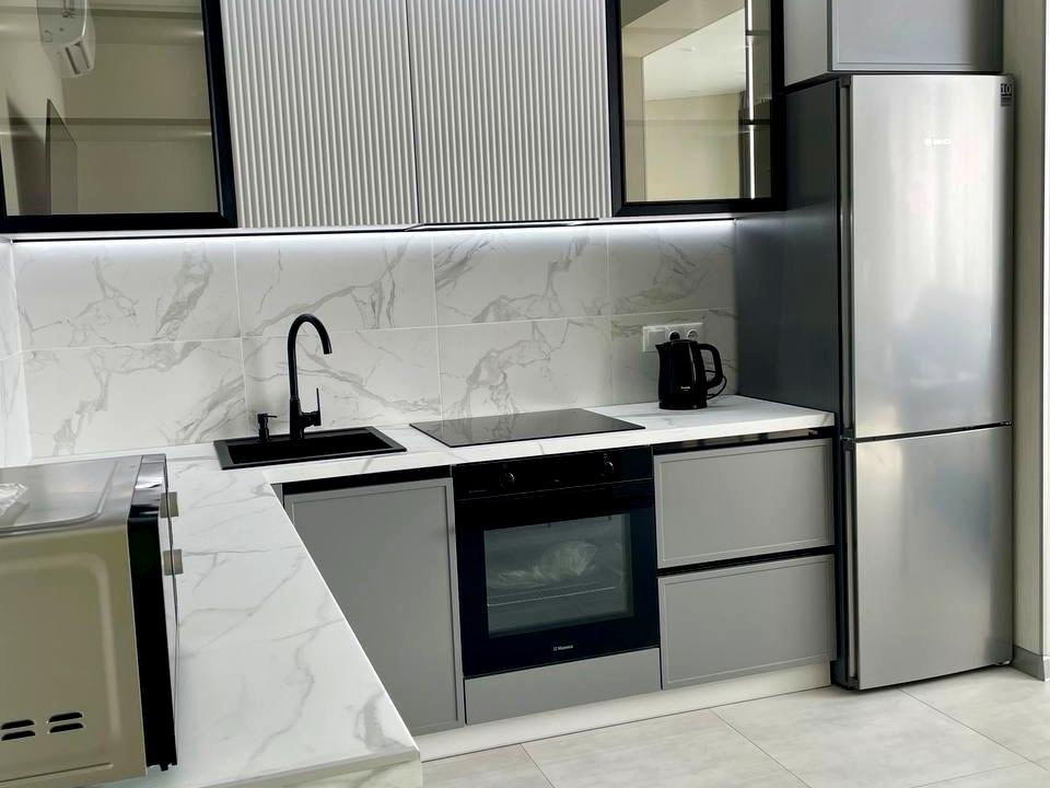 В квартирі 2 кімнати, Тип будинку - Спец. проект. Немає газу, кухонна плита електрична. Є балкон. Будинок побудований в 2021 році. Загальний стан квартири - З ремонтом. Гаряча вода - електричний бойлер. Кількість санвузлів: 1. Тип кухні - кухня-студія. Кількість спален: 1. Комісія за послуги 100 %