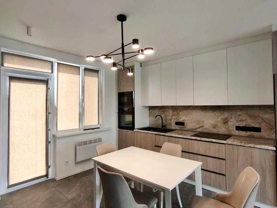 В квартирі 3 кімнати, Технологія будівництва - Цегляна, Тип будинку - Спец. проект. Кухонна плита електрична. Є балкон. У квартирі є Телевізор, Підігрів підлоги, Кондиціонер, Пральна машина, Душова кабіна, Ванна, Холодильник, Мікрохвильовка, Посудомийна машина. Будинок побудований в 2022 році. Загальний стан квартири - З ремонтом. Гаряча вода - електричний бойлер. Кількість санвузлів: 3 і більше. Інтернет бездротовий. Працює без світла - вода, інтернет. Тип кухні - кухня-студія. Кількість спален: 2. Комісія за послуги 75 %