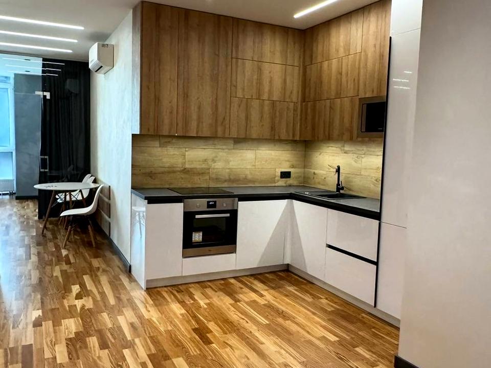 В квартирі 1 кімната, висота стелі 3 метра, Технологія будівництва - Монолітно-каркасна, Тип будинку - Спец. проект. Немає газу, кухонна плита електрична. У квартирі є Праска, Кондиціонер, Пральна машина, Посудомийна машина. Будинок побудований в 2017 році. Загальний стан квартири - З ремонтом. Гаряча вода - електричний бойлер. Кількість санвузлів: 1. Інтернет оптоволоконний. Працює без світла - вода, опалення, інтернет, ліфт. Тип кухні - кухня-студія. Кількість спален: 1. Інфраструктура території: дитячий майданчик, спортивний майданчик, виокремлена зона для вигулу тварин. Комісія за послуги 100 %