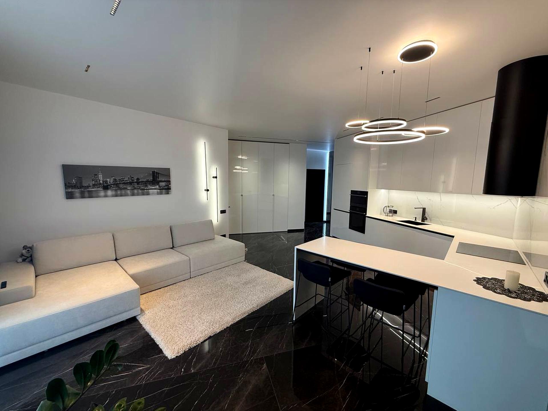 В квартирі 2 кімнати, висота стелі 3 метра, Технологія будівництва - Монолітно-каркасна, Тип будинку - Спец. проект. Планування кімнат Кухня-вітальня. У квартирі є Кондиціонер. Загальний стан квартири - З ремонтом. Комісія за послуги 5 %