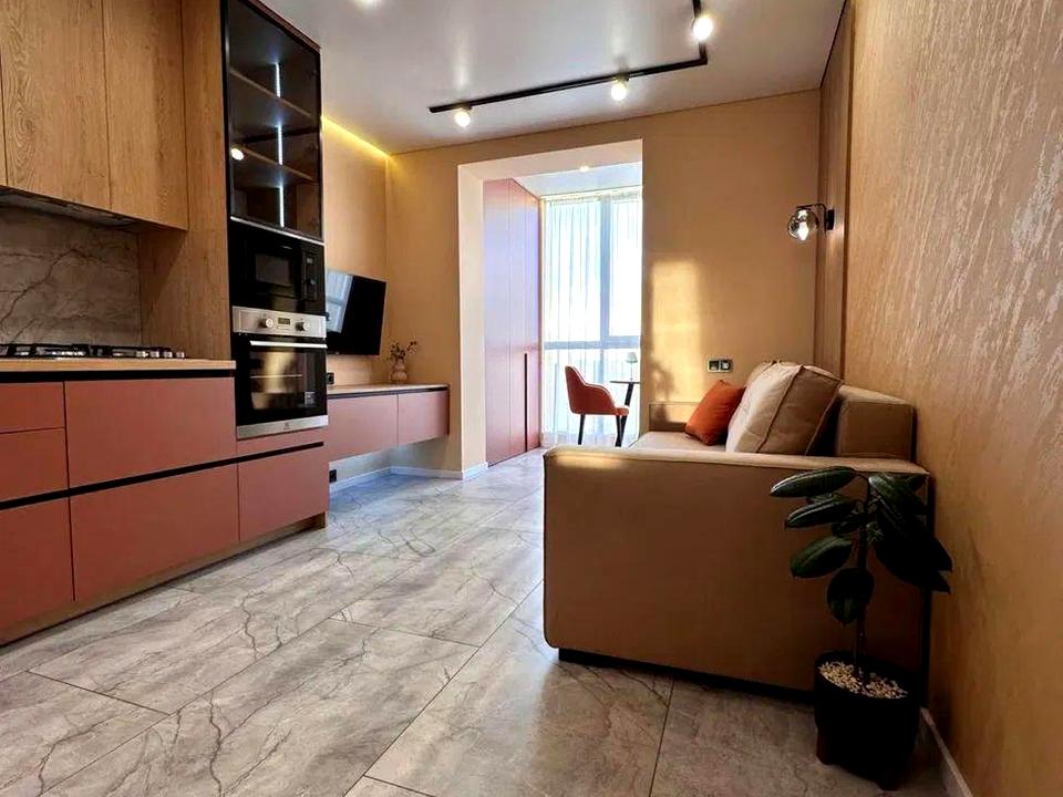 Загальна площа – 45 кв.м.: кухня вітальня 17 кв.м., 1 окрема кімната, суміжний санвузол, гардеробна, лоджія, тепла підлога.