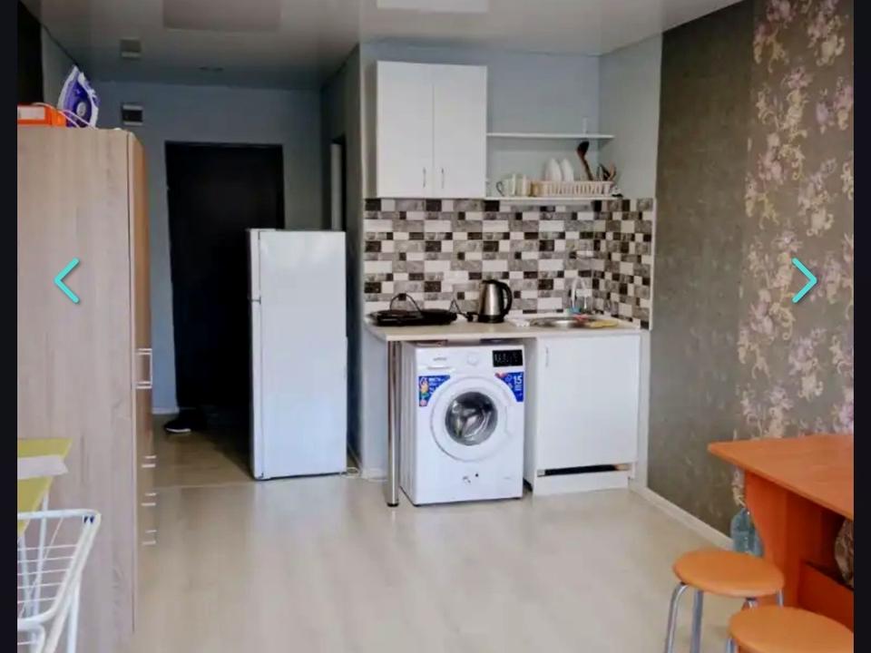 В квартирі 1 кімната, висота стелі 2.8 метра. Планування кімнат Кухня-вітальня. Кухонна плита електрична. Гаряча вода - електричний бойлер. Опалення центральне. Немає балкона. У квартирі є Пральна машина, Ванна, Холодильник. Загальний стан квартири - З ремонтом. Безбар'єрність: вхід у будинок на рівні землі. Кількість санвузлів: 1. Працює без світла - вода, інтернет. Тип кухні - кухня-студія. Кількість спален: 1. Комісія за послуги 5 %