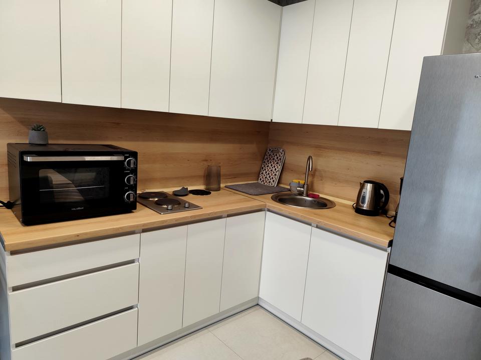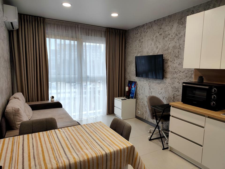 В квартирі 2 кімнати, висота стелі 2.75 метра, Технологія будівництва - Монолітно-каркасна, Тип будинку - Спец. проект. Немає газу, кухонна плита електрична. Немає балкона. У квартирі є Телевізор, Підігрів підлоги, Кондиціонер, Пральна машина, Сушильна машина, Ванна, Холодильник, Мікрохвильовка. Будинок побудований в 2020 році. Загальний стан квартири - З ремонтом. Безбар'єрність: вхід у будинок на рівні землі, ліфт, пристосований до крісла колісного. Гаряча вода - електричний бойлер. Кількість санвузлів: 1. Інтернет оптоволоконний. Працює без світла - вода, інтернет, ліфт. Власник погоджується продати по програмі єВідновлення. Тип кухні - кухня-студія. Кількість спален: 1. Немає підземного паркінгу, доступного як укриття. Інфраструктура території: дитячий майданчик, спортивний майданчик, двір без авто. Комісія за послуги 5 %