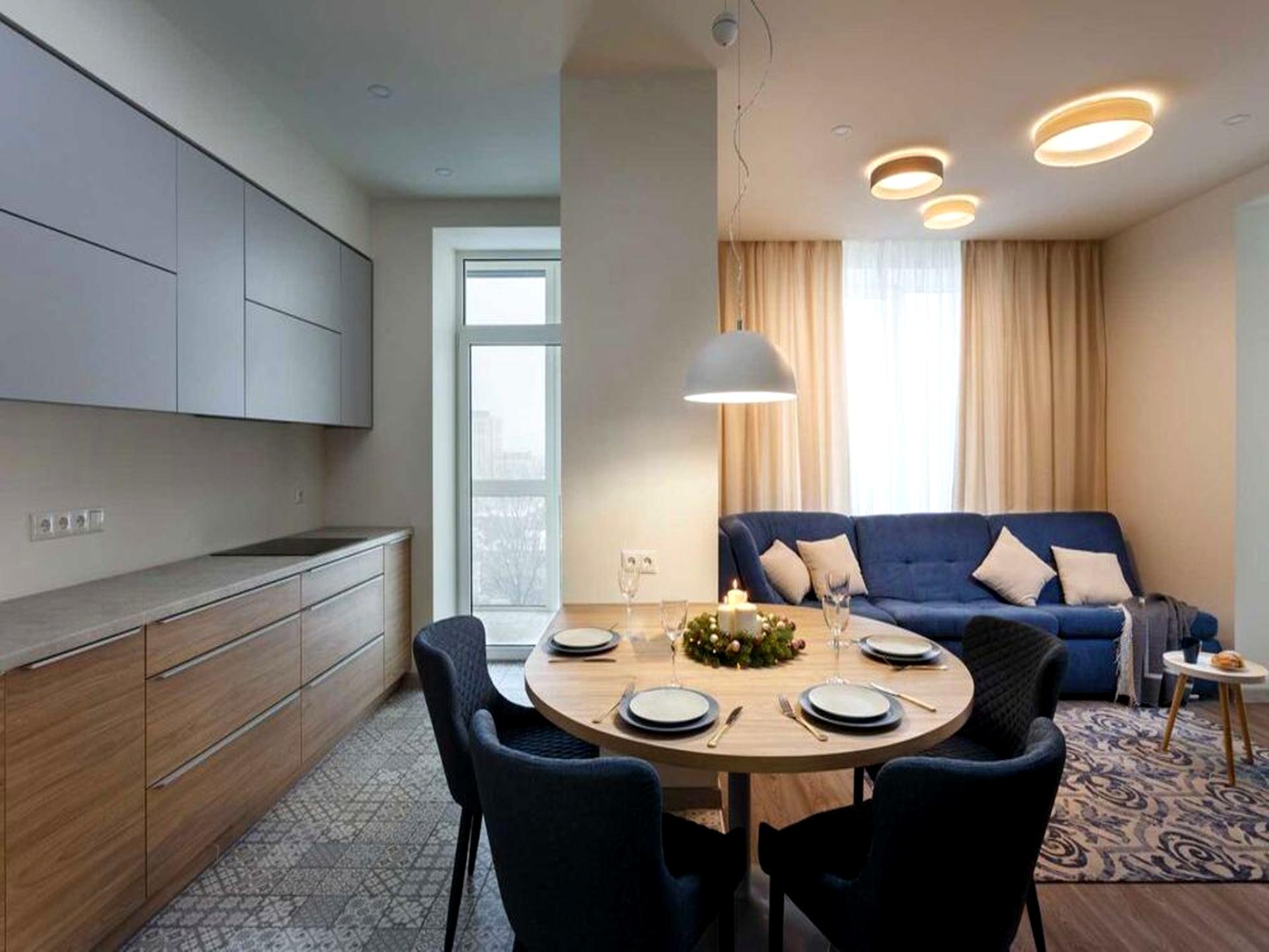 Спланировано в кухню-студию и просторную спальню.