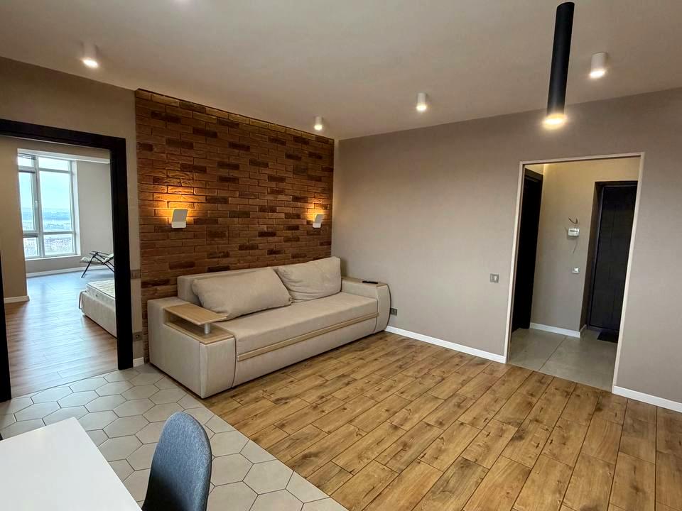 В квартирі 2 кімнати, висота стелі 2.8 метра, Технологія будівництва - Цегляна, Тип будинку - Спец. проект. Є газ, кухонна плита газова. Є балкон. У квартирі є Телевізор, Кондиціонер, Пральна машина, Ванна, Холодильник, Мікрохвильовка. Будинок побудований в 2018 році. Загальний стан квартири - З ремонтом. Гаряча вода - газовий котел. Кількість санвузлів: 1. Інтернет дротовий (кабельний). Працює без світла - газ. Тип кухні - кухня-студія. Кількість спален: 1. Немає підземного паркінгу, доступного як укриття. Інфраструктура території: дитячий майданчик. Комісія за послуги 5 %