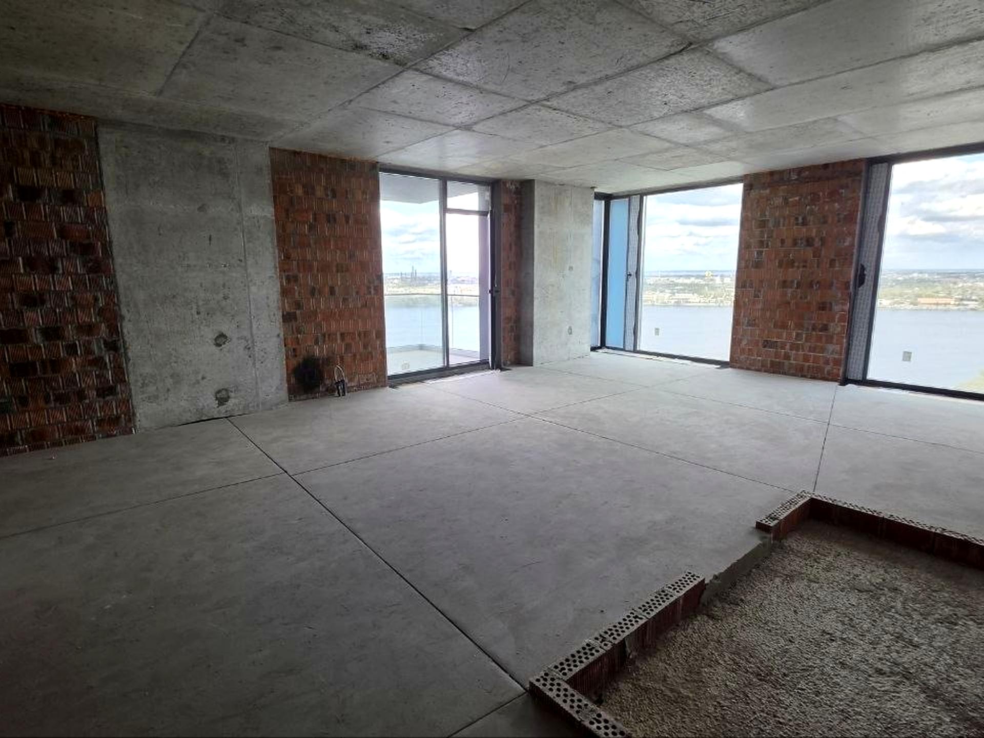 Квартира планируется в кухню-студию и 2 спальни. Изюминкой квартиры является терраса с ошеломляющим лучшим видом на реку и Комсомольский остров .