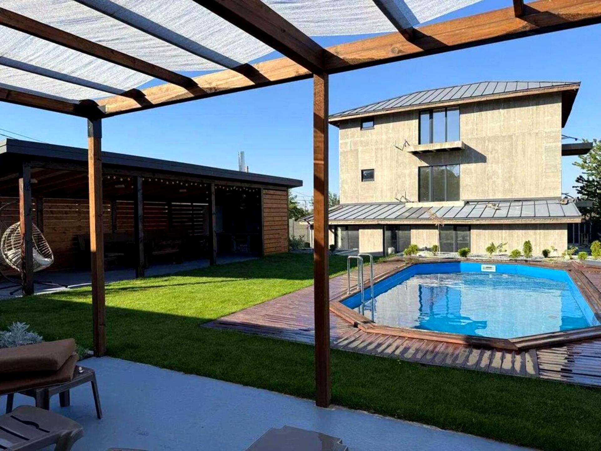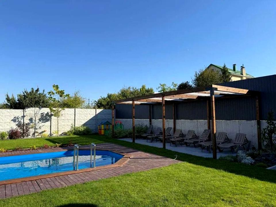 Будинок, 3 поверхи, 6 кімнат. Матеріал стін - цегляний. Під'їзд до будинку - асфальт. Площа ділянки 10 соток. Висота стелі 2.6 метра. В будинку 1 балкон. Тип кухні - кухня-студія. Немає підвалу. У будинку є Сад/город, Зона мангалу, Тераса, Басейн. Своя каналізація. Загальний стан будинку - Без ремонту. Газу немає. Холодна вода - водопровід. Гарячої води немає. Опалення котел електричний. Кількість санвузлів: 3. Покриття даху - металочерепиця. Тип автономної електроенергії: Автономної електроенергії немає. Інтернету немає. Кількість паркомісць: 2. Кількість спален: 6 і більше. Комісія за послуги 5 %
