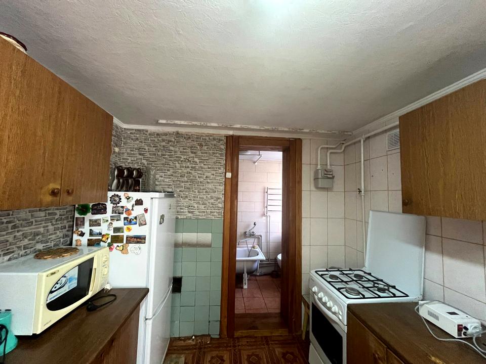 кухня: кухонний куточок, меблі, холодильник, мікрохвильова піч, газова духовка