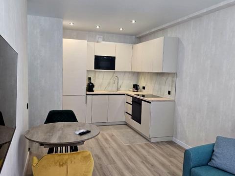 Кухня вбудована, є основна побутова техніка - варильна панель, великий холодильник, духова шафа, стіл, стільці, витяжка, посудомийна машина, незасклений балкон, барний стілець, порохотяг, чайник.