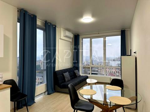 Современная однокомнатная квартира общей площадью 47 м2. Кухня гостиная, спальня, подогрев полов, посудомоечная машина, открытый балкон.