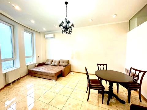 Квартира з новим ремонтом: передпокій, кухня-вітальня студіо та окрема спальня, балкон 2,3 кв.м. Висота стелі 2,8 м. Якісні корпусні меблі за індивідуальними проектами. У передпокої велика кутова шафа, тумба для взуття. У вітальні розкладний диван, обідній стіл зі стільцями, SmartTV. У спальні двоспальне ліжко, велика вбудована шафа, окреме мебльоване робоче місце для навчання та роботи.