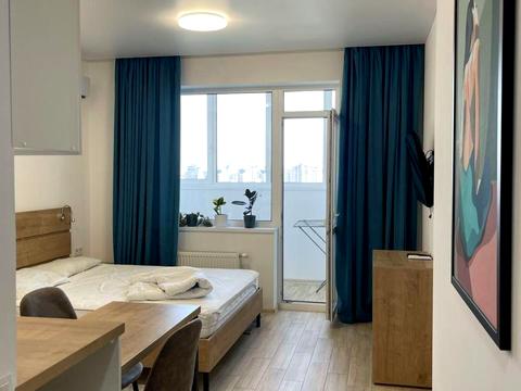 Квартира розташована на високому видовому поверсі. З дизайнерським ремонтом. Планування складається з кухні - вітальні, повноцінної спальні, санвузли і балкона.