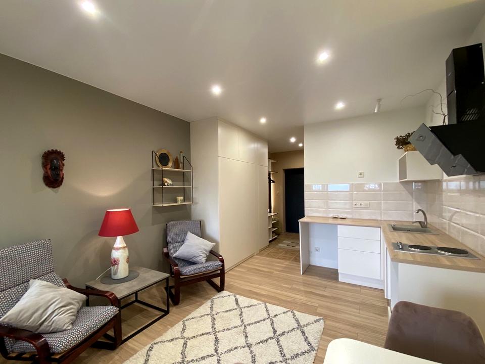 В квартирі 1 кімната, Технологія будівництва - Монолітно-каркасна. Планування кімнат Студія. Немає газу. У квартирі є Підігрів підлоги, Пральна машина, Ванна, Холодильник. Будинок побудований в 2021 році. Загальний стан квартири - З ремонтом. Гаряча вода - електричний бойлер. Кількість санвузлів: 1. Працює без світла - вода, опалення, інтернет, ліфт. Комісія за послуги 50 %