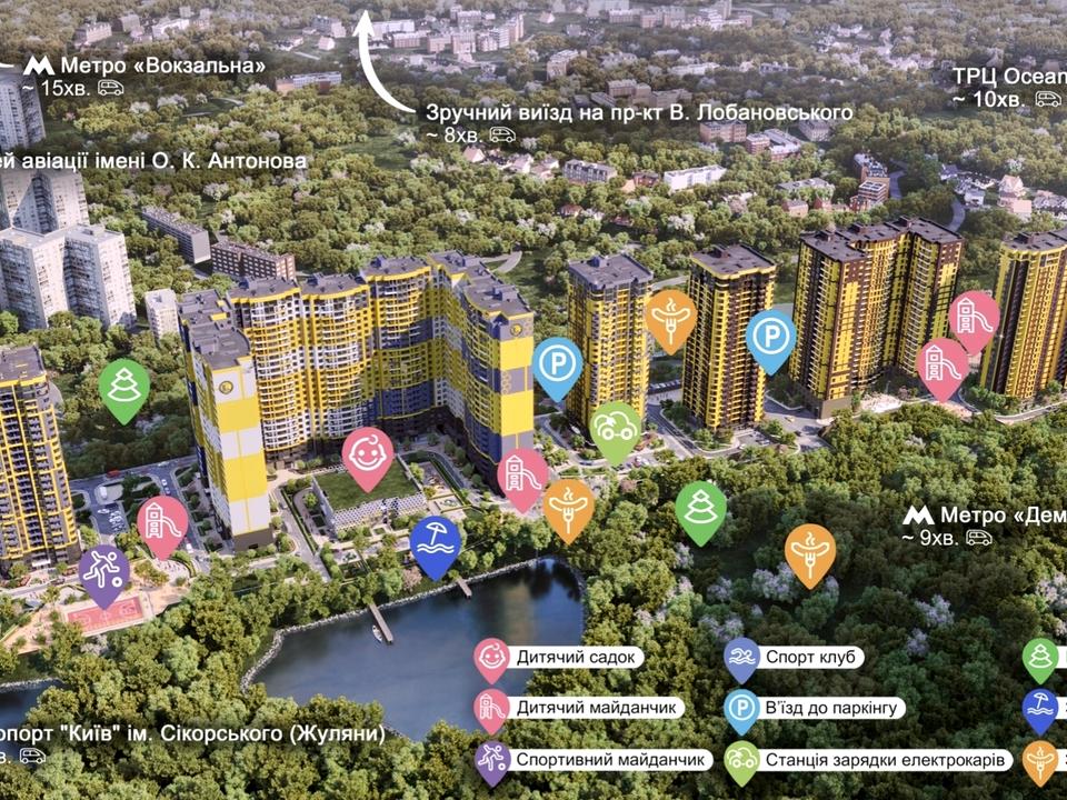 Вигідно відрізняється наявністю поруч великої зеленої зони та озера, супермаркету Новус, двох дитячих садків, гімназії Міленіум, кінцевої зупинки Кадетський гай.