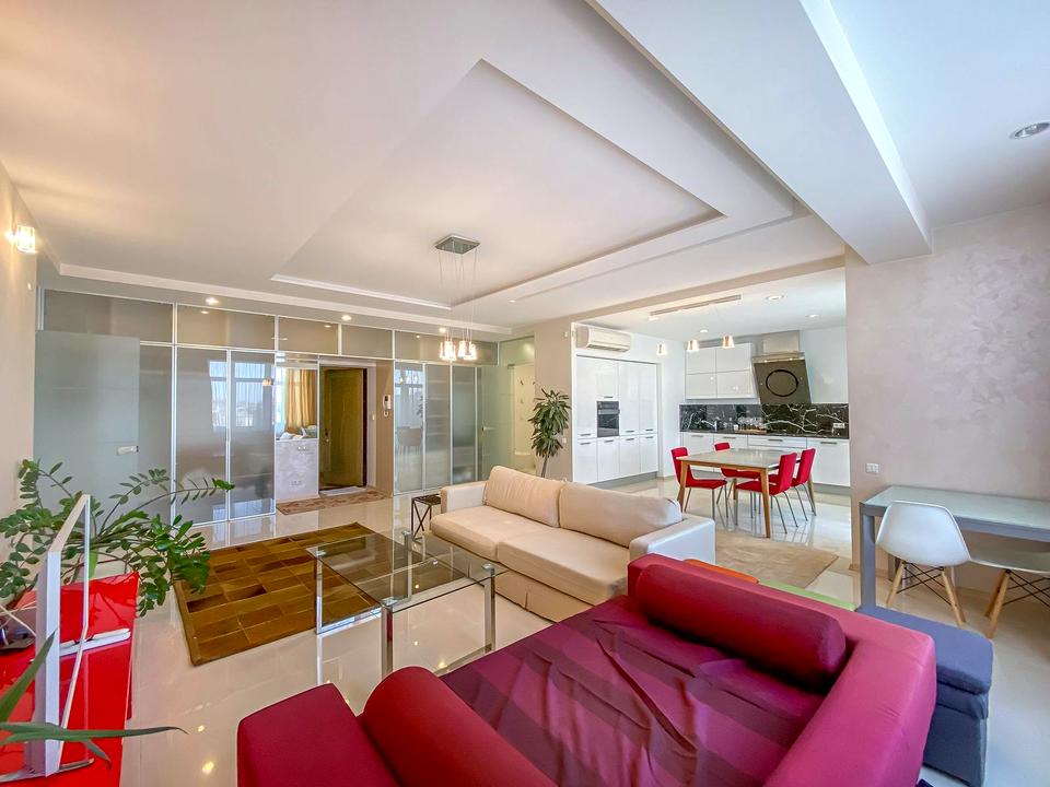 Оренда квартири в елітному будинку, побудованому компанією Житлобуд у 2008 році. Будинок розташований в самому центрі Києва, в декількох хвилинах від Бессарабського ринку, Мандарин плаза, ТРК Гулівер. Поруч метро Хрещатик і Палац спорту, є кілька спортклубів, супермаркетів, аптек, так само в пішій досяжності маса пам'яток, театрів, ресторанів і т.д. У будинку під'їзди з охороною, ліфт, який їде в паркінг (є своє закріплене місце), приватна медична клініка і йога-студія.З вікон є панорамний вид на центр столиці. У квартирі велика кухня - студія, 2 спальні, 2 с/в і гардеробна. Квартира повністю мебльована і оснащена всім необхідним для життя.