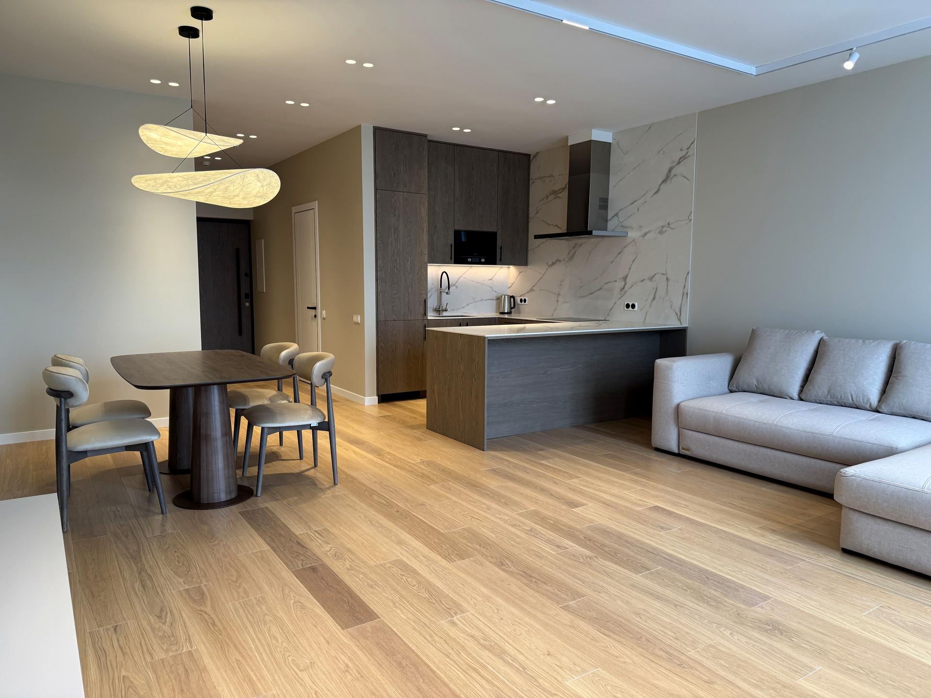 Пропонується в оренду нова, ще не жила квартира з дизайнерським ремонтом у одному з найсучасніших житлових комплексів столиці — Triiinity. Це простір для тих, хто цінує якість, спокій і продуману до дрібниць естетику.