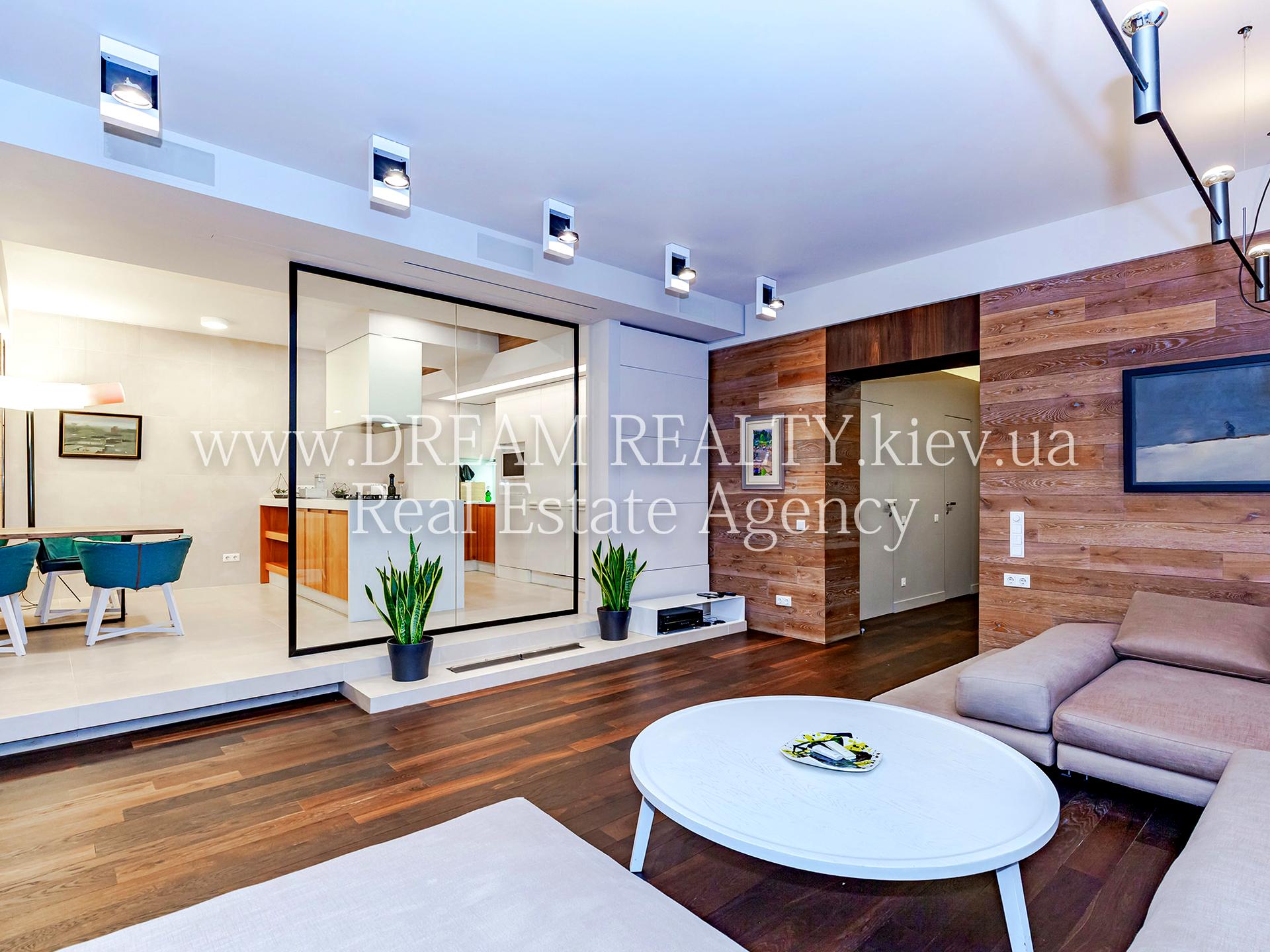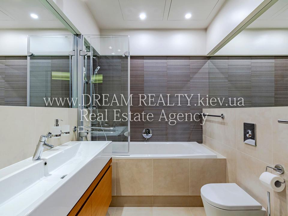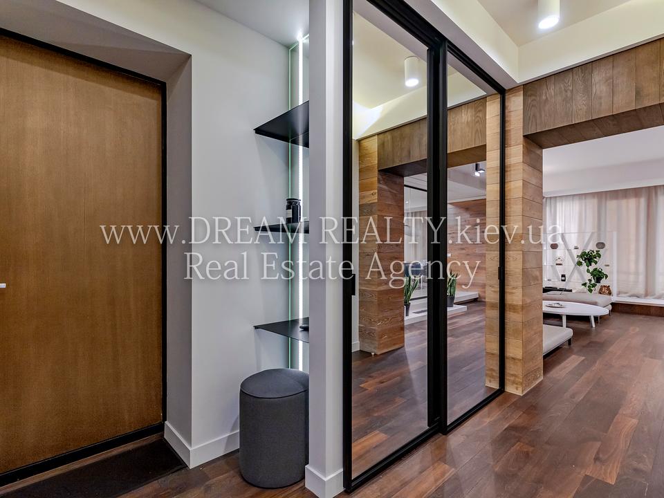 Виноградный пер., 4. Тихий переулок на Липках – в самом элитном районе Киева в 7 минутах ходьбы от Мариинского парка. До 10 минут ходьбы до метро Крещатик, Арсенальная и Кловская. Рядом школа, хорошие рестораны, театры скверы и многое другое, прекрасное место для жизни семьи. Дом имеет ухоженную, закрытую, охраняемую территорию с парковкой для жильцов (для этой квартиры есть отдельное место под навесом). Чистое и светлое парадное, консьерж, лифт. Квартира расположена на 6 этаже / 9 этажного кирпичного дома. Общая площадь 130/70/25 кв.м. Квартира делалась для себя, очень хорошо спланирована, продумано все до мелочей: прихожая с массой шкафов и мест для хранения; гостевой с/у с ванной; постирочная с массой полок, стиральной и сушильной машинами; просторная гостиная – студия с панорамными окнами и прекрасным видом на город, где есть большой удобный диван, профессиональный домашний кинотеатр, а так же био-камин; удобная встроенная кухня с островком и обеденным столом, оснащенная техникой лучших мировых производителей, посудой WMF и Valleroy and Boch; детская комната; спальня со своей гардеробной и ванной комнатой (ванна и душевая). Интерьер выполнен с использованием экологически-чистых материалов: деревом, стеклом, текстилем. Квартира полностью меблирована и оснащена канальным кондиционированием, полами с подогревом, бойлером, кабельным и спутниковым телевидением, системой сигнализации, а также банными принадлежностями Missoni.