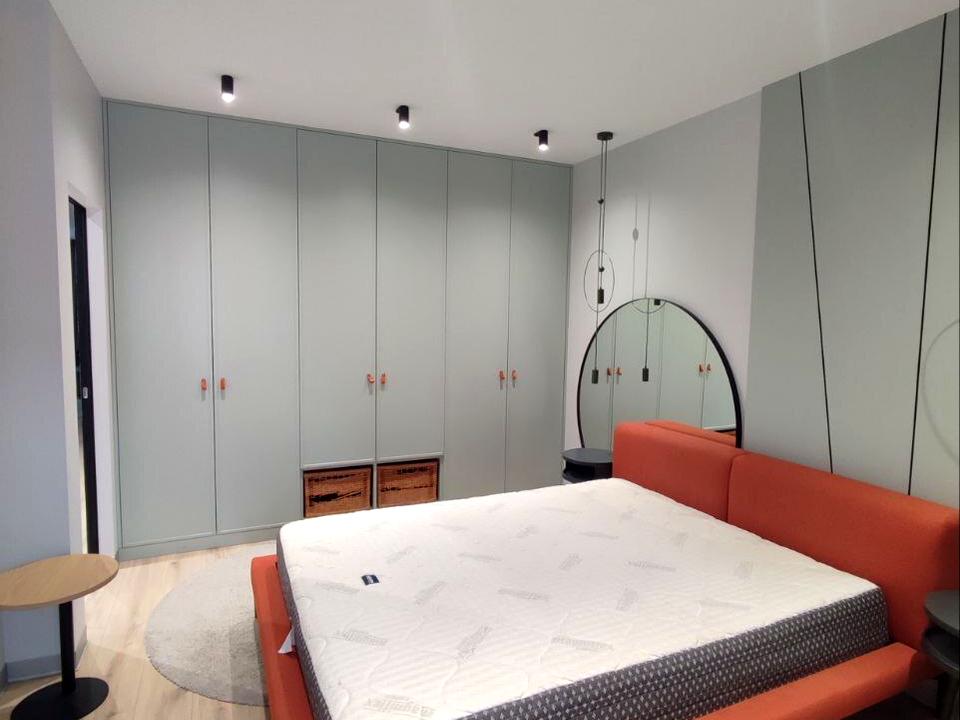 Вбудовані меблі, двоспальне ліжко з ортопедичним матрацом зима - літо, розкладний диван з водовідштовхувальною тканиною.
