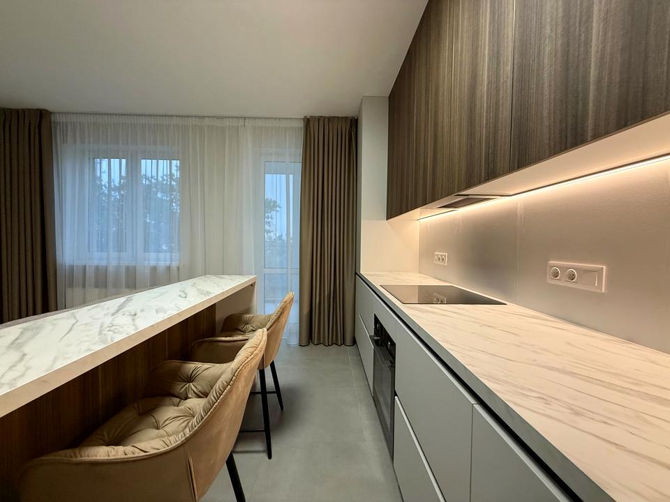 — барна стійка + мʼякі стільці