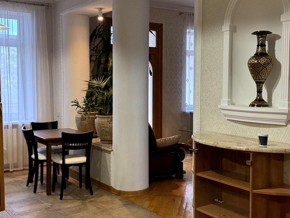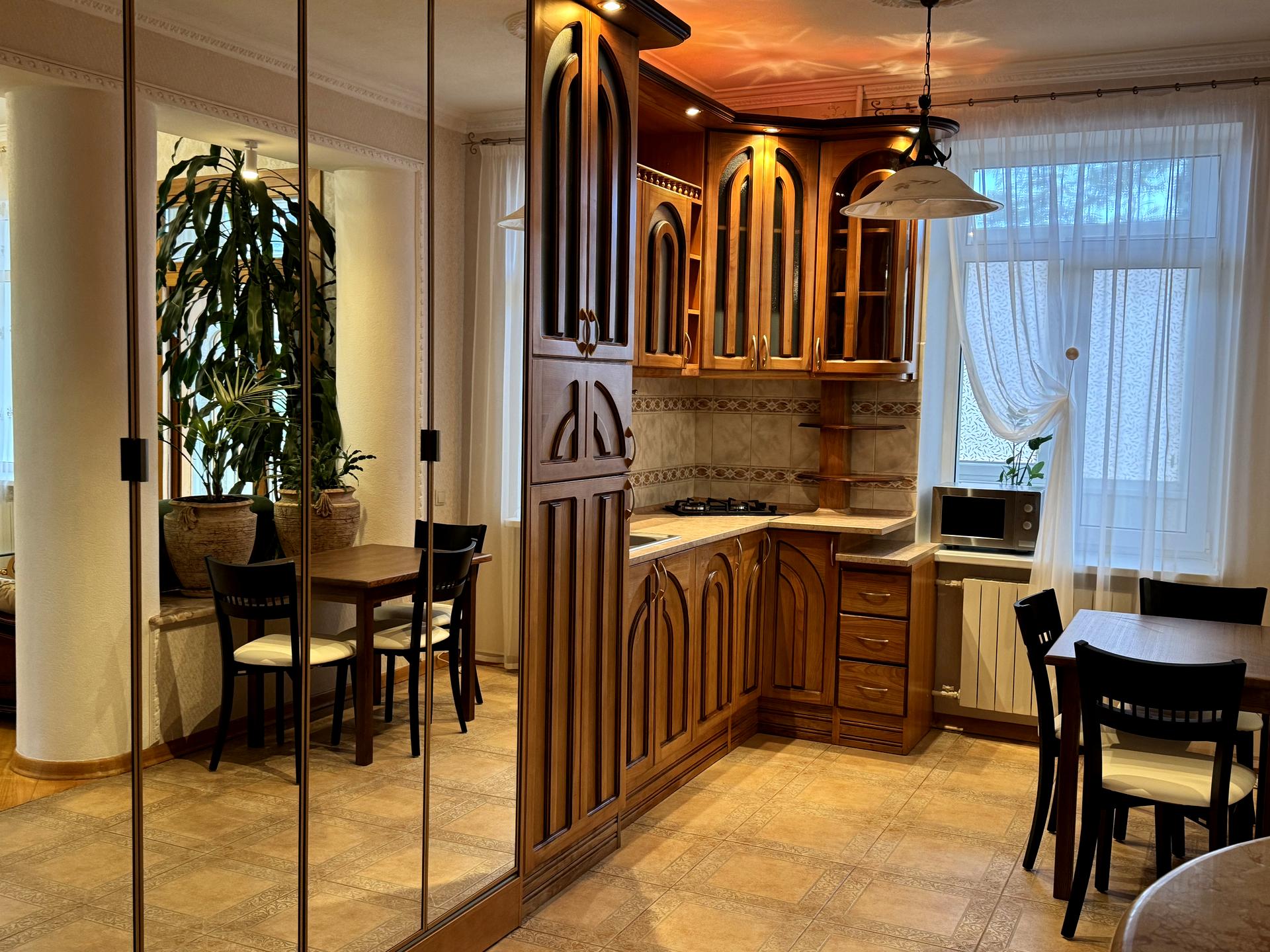обладнана побутовою технікою : кондиціонер, пральна машина автомат, газова плита, витяжка, холодильник , мікрохвильовка. Встановлений лічильник на холодну воду, є бойлер, є сигналізація. Квартира дуже світла, простора, вікна виходять у двір, гарний краєвид. Будинок розташований в самому центрі Києва. Чистий , доглянутий під'їзд, домофон..