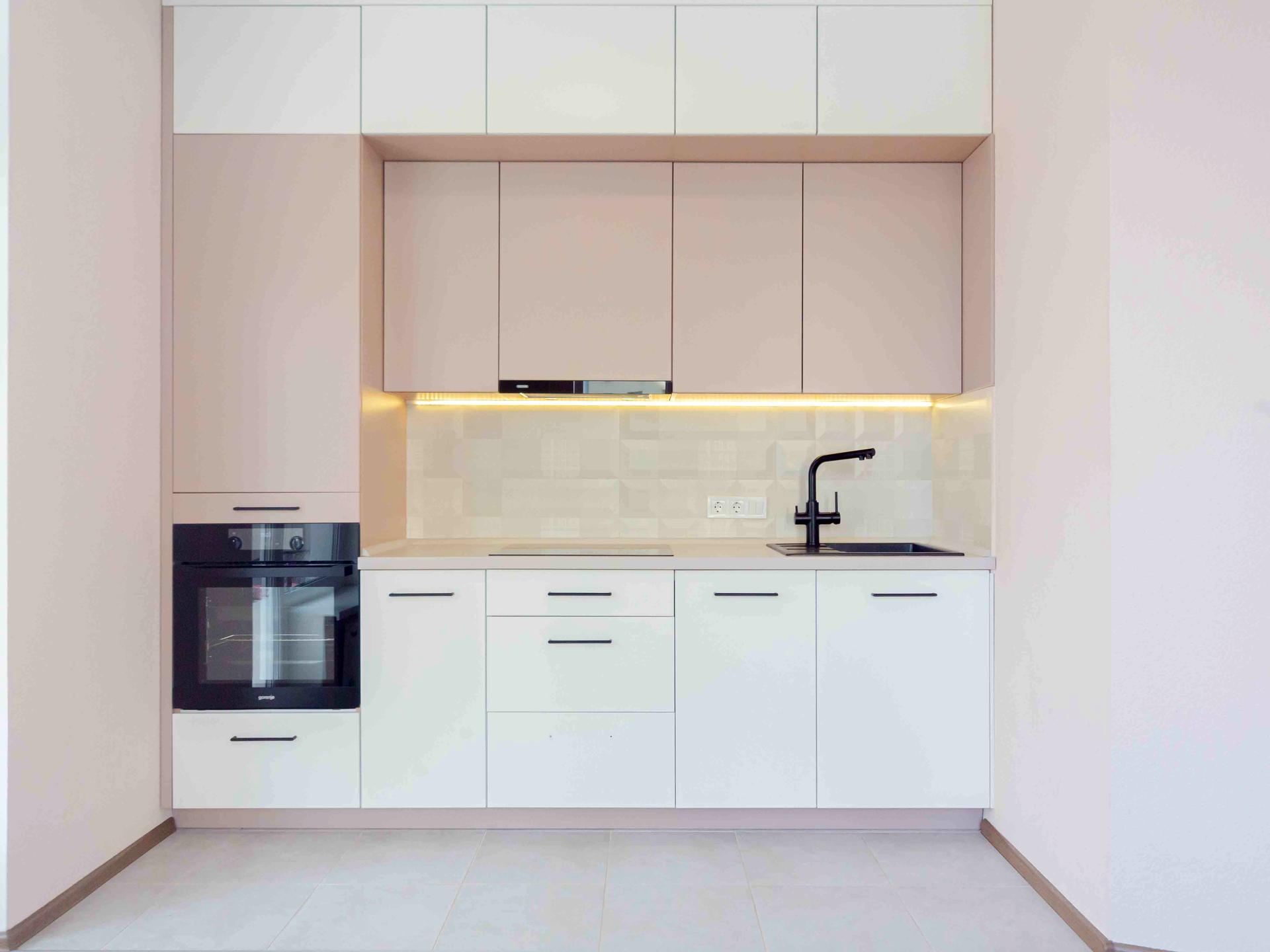 * кухня-студія з меблями, розкладним диваном та повним комплектом техніки (варильна поверхня, духовка, мікрохвильова піч, посудомийна машина, витяжка, холодильник);