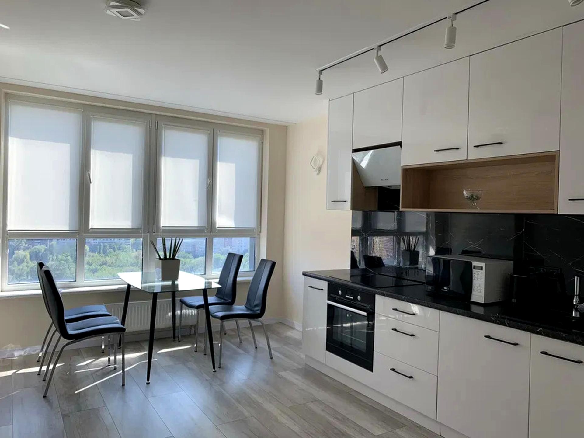 Сучасний ремонт, стильна кухня, велика окрема спальня. Є кондиціонер та телевізор. Гарний вигляд з вікна.