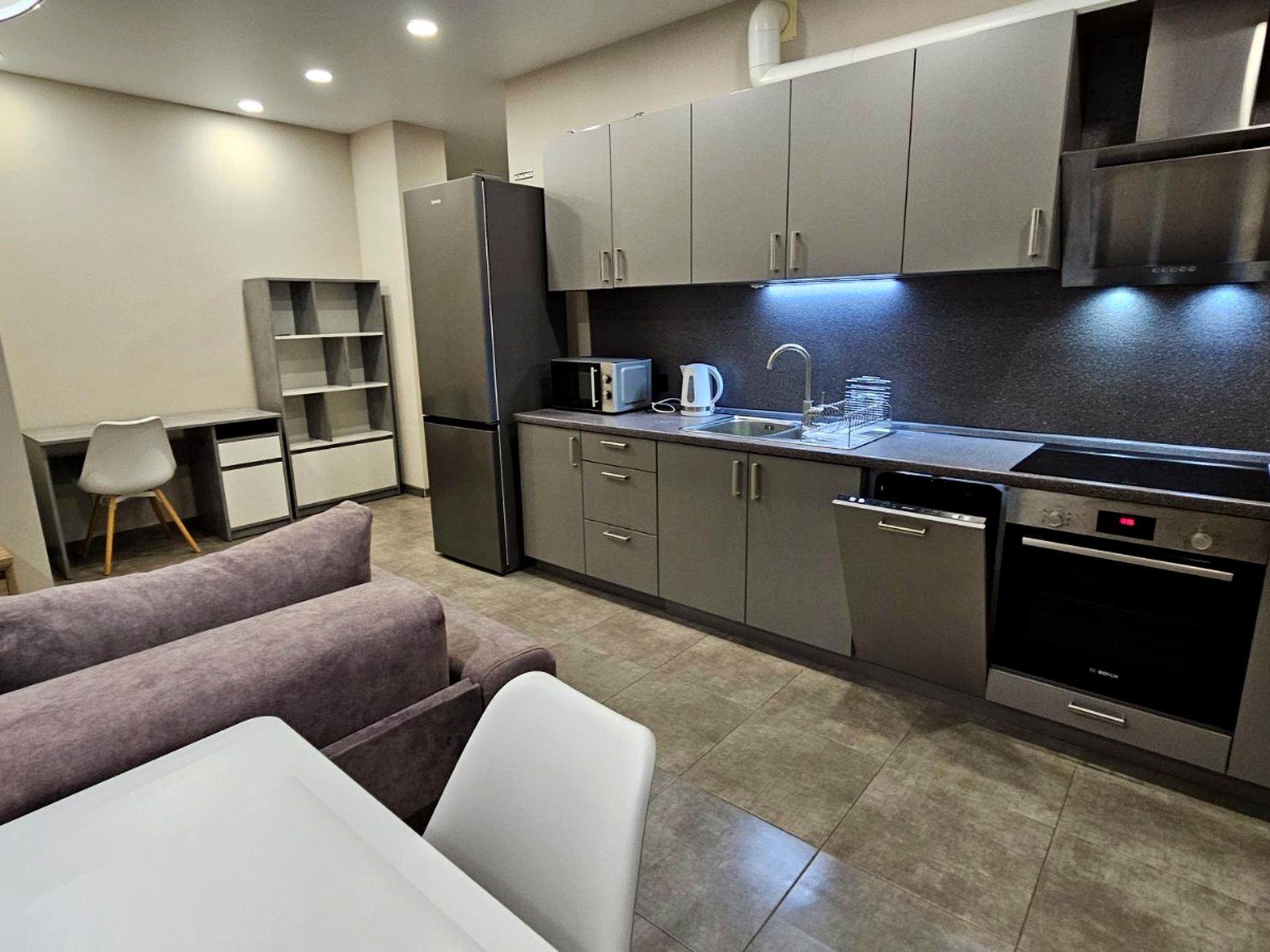 . 65/20/25, шикарний ремонт, кухня-вітальня 25м зі столовою зоною, розкладний диван, і окремо спальня 20м. Передбачено все-ліжко, диван, столи (обідній та для роботи ПК), посудомийна, кондиціонери, ТБ, СМАРТ, шикарний балкон з меблями. Квартира видова! Лічильники на все! (На тепло-суттєва економія взимку). Відеоспостереження. Сигналізація. Охорона, інфраструктура / Центр. та тп.