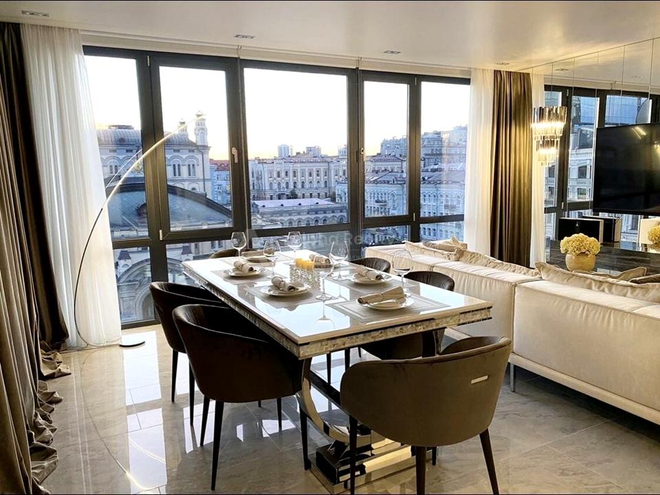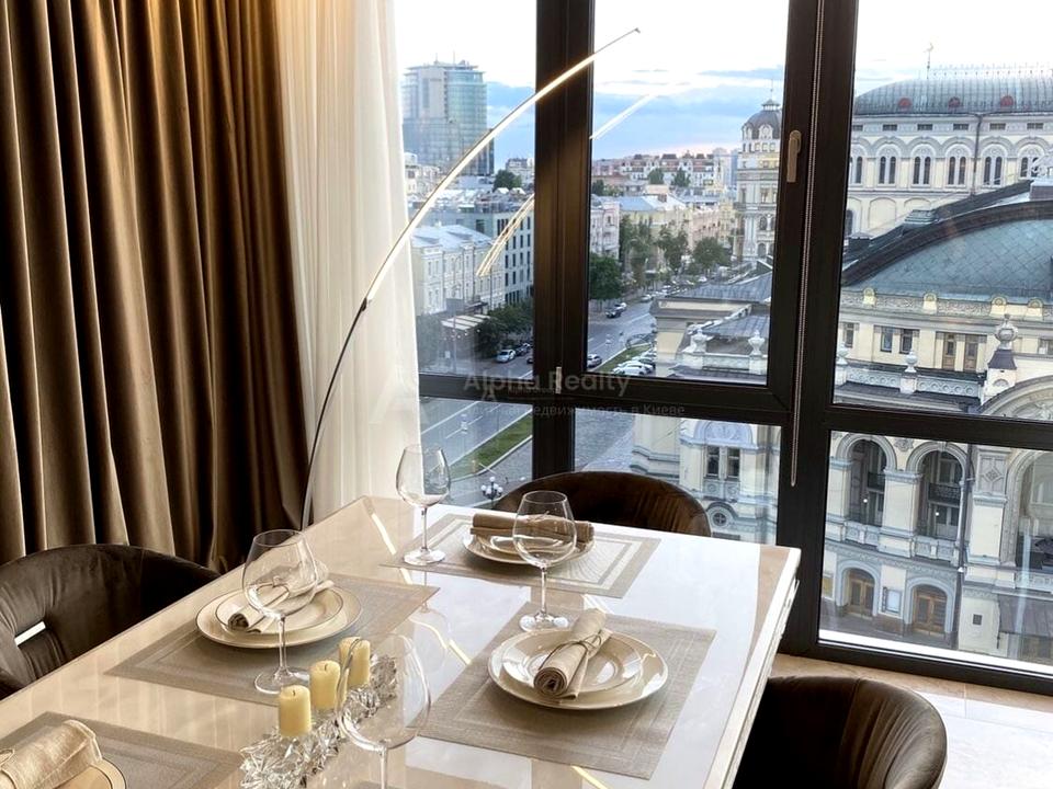 До оренди пропонуються стильні апартаменти в самому центрі Києва, панорамний вид на БЦ Леонардо, Оперний Театр. У двох хвилинах ходьби м. Золоті Ворота та м. Театральна, парк Шевченка та Софіївська площа. Дві кімнати, окрема спальня, вітальня, окрема кухня, стелі 2,7.