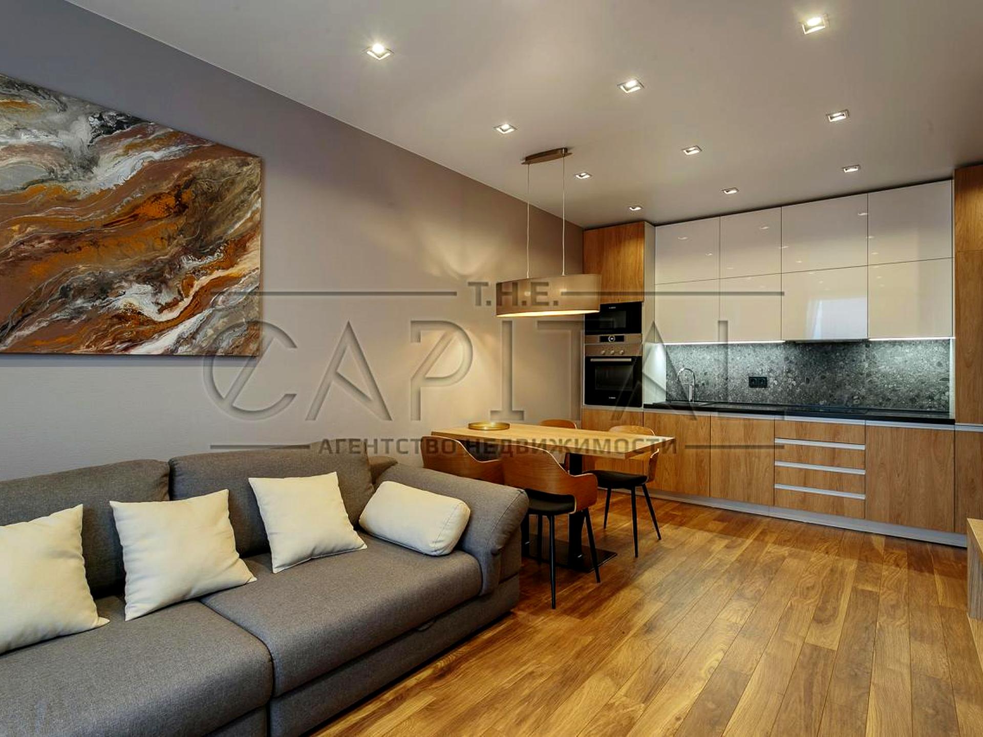 Інтер’єр: сучасний ремонт у світлих тонах, стильні меблі, велика кількість освітлення.