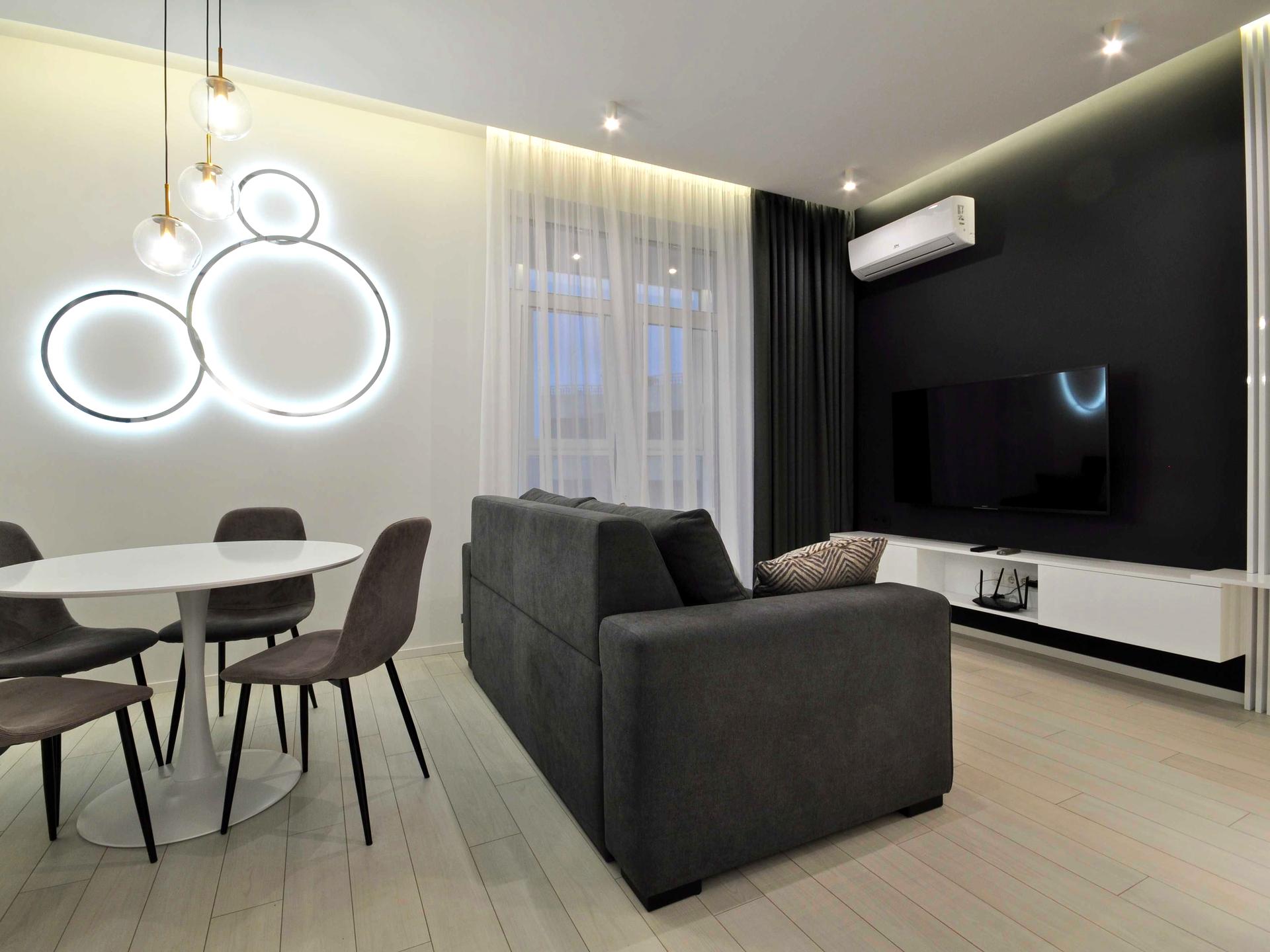 Стильне оздоблення інтер'єру, багаторівневе освітлення, власний мікроклімат в кожному приміщенні.