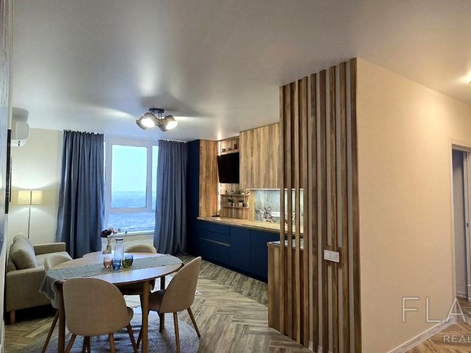 Новий ремонт! Затишна і світла квартира з вікнами в підлогу! Площа: 68 м². Поверх: 18/24. Планування: дві окремі кімнати, простора кухня-вітальня, санвузол суміжний з підігрівом підлоги, пральня. Квартира повністю укомплектована меблями і технікою. Опалення: централізоване. Швидкісний інтернет.