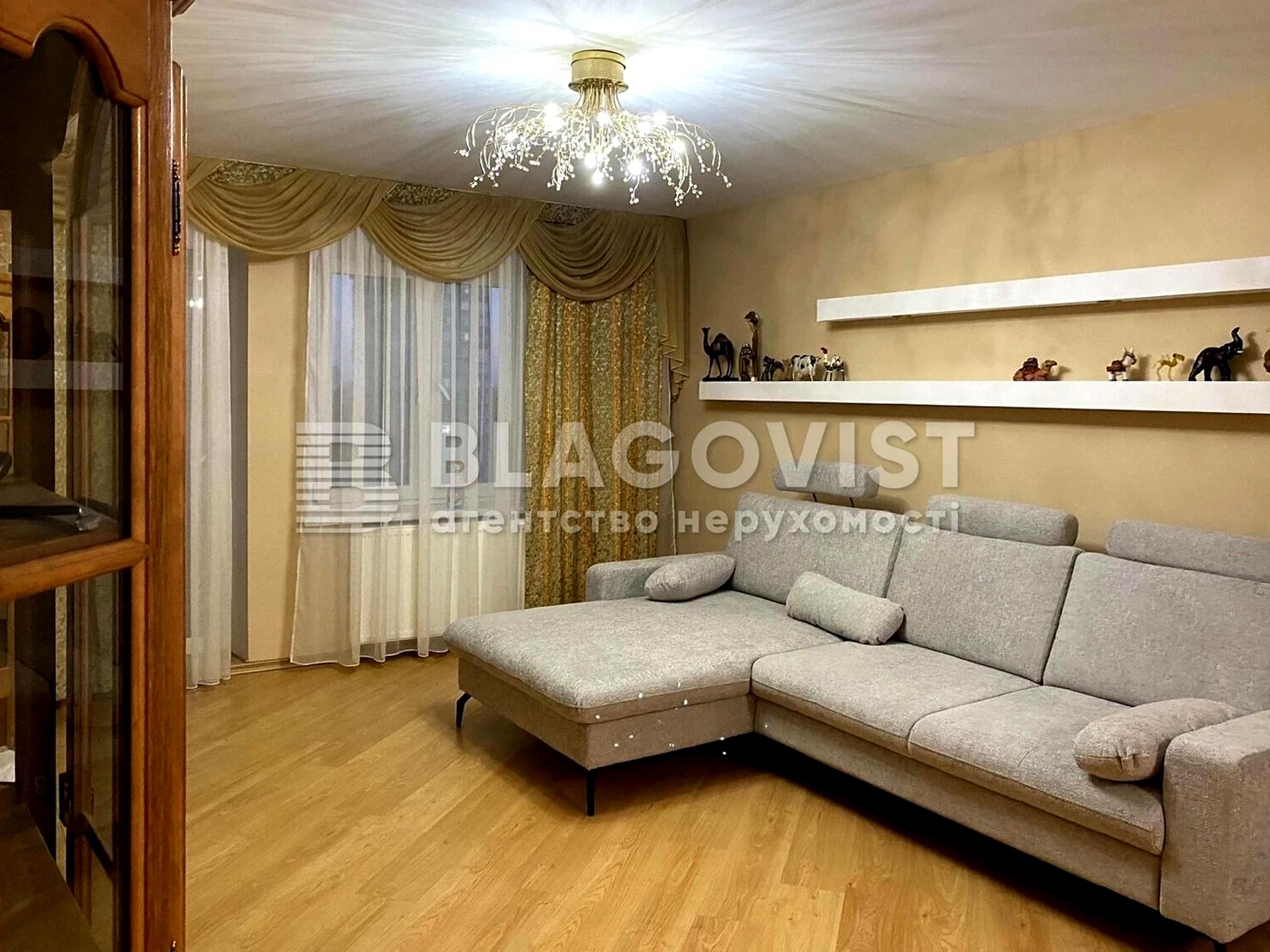 Трьохкімнатна квартира з великим балконом. В квартирі є в наявності всі необхідні меблі та побутова техніка (холодильник, мікрохвильова піч, електрична поверхня та духова шафа, машина для миття посуду, прання). У суму оренди входить виділене паркомісце на парковці з охороною. Будинок з консьєржем і центральним замком на вході. Зручна локація, до м. Святошино-10 хвилин.