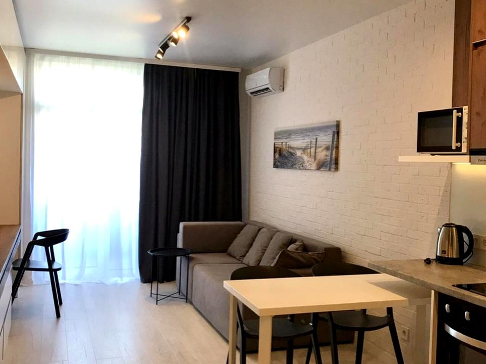 В квартирі 1 кімната, Технологія будівництва - Цегляна, Тип будинку - Спец. проект. Планування кімнат Студія. Загальний стан квартири - З ремонтом. Працює без світла - вода, опалення, інтернет, ліфт. Комісія за послуги 50 %